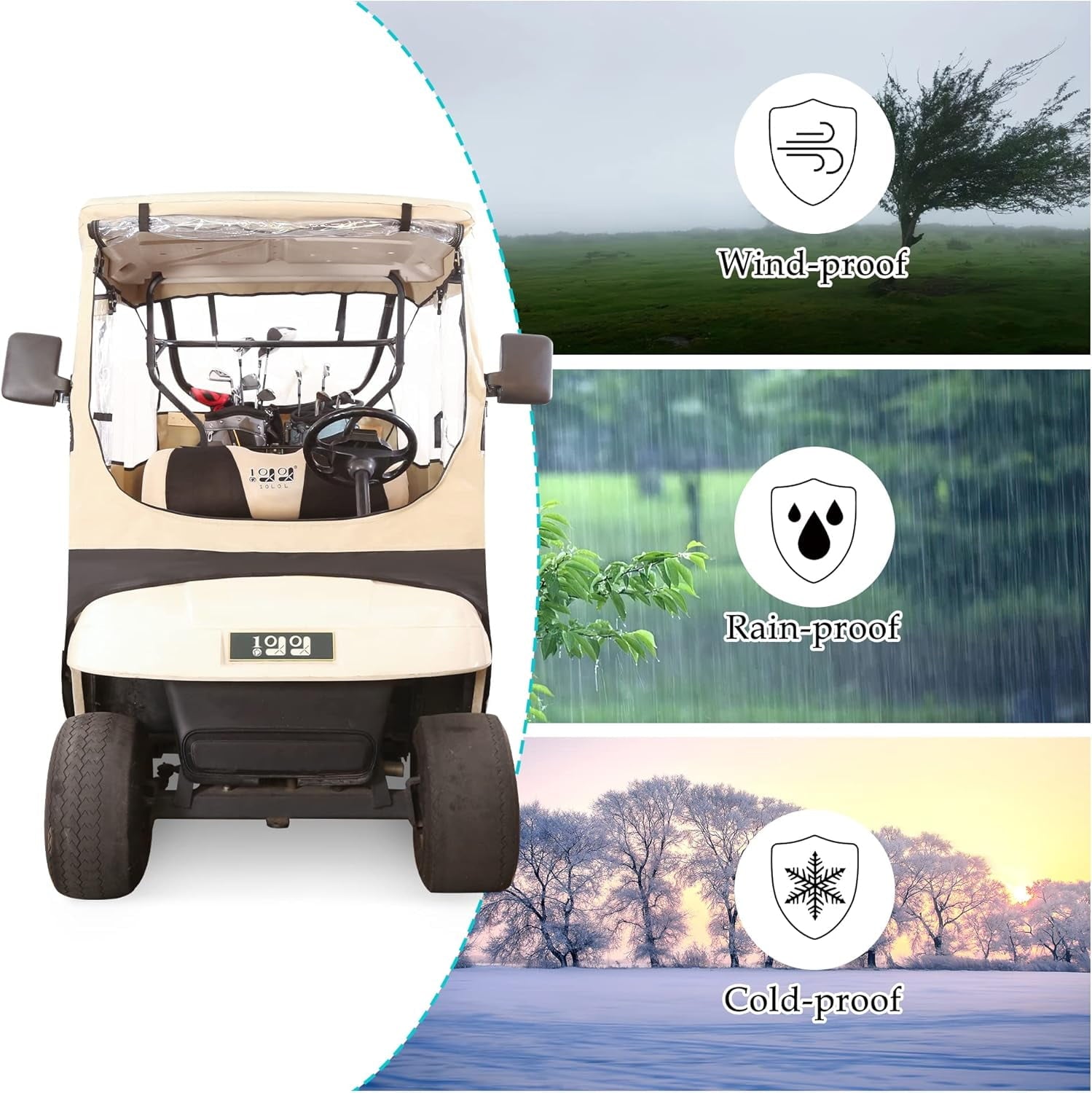 - The golf cart enclosure cover is easy to put on and take off. No tools required, only need few minutes to be fully assembled.