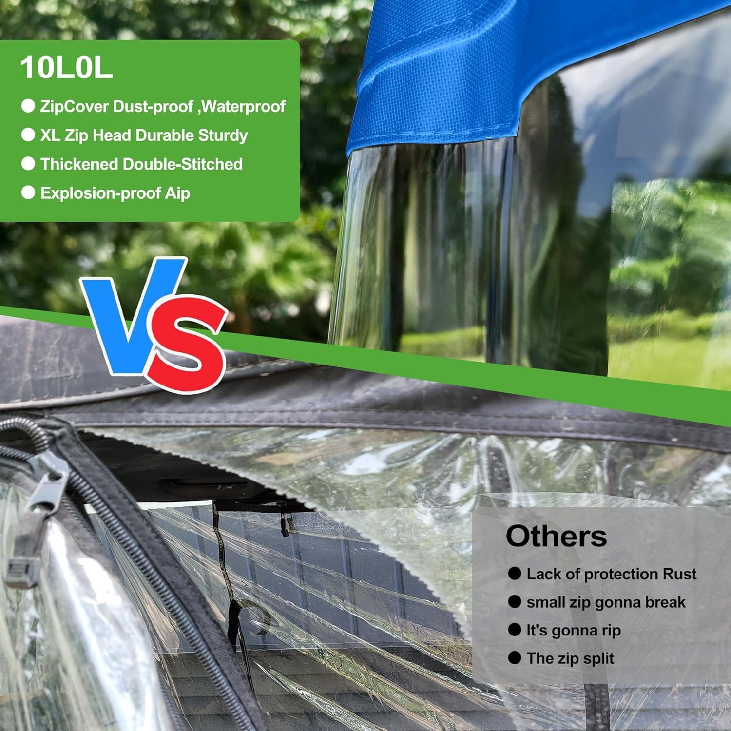 - The upgraded #10 zipper of this golf cart enclosure ensures durability with high-quality dual stitching, preventing cracks and ensuring smooth operation in any weather.