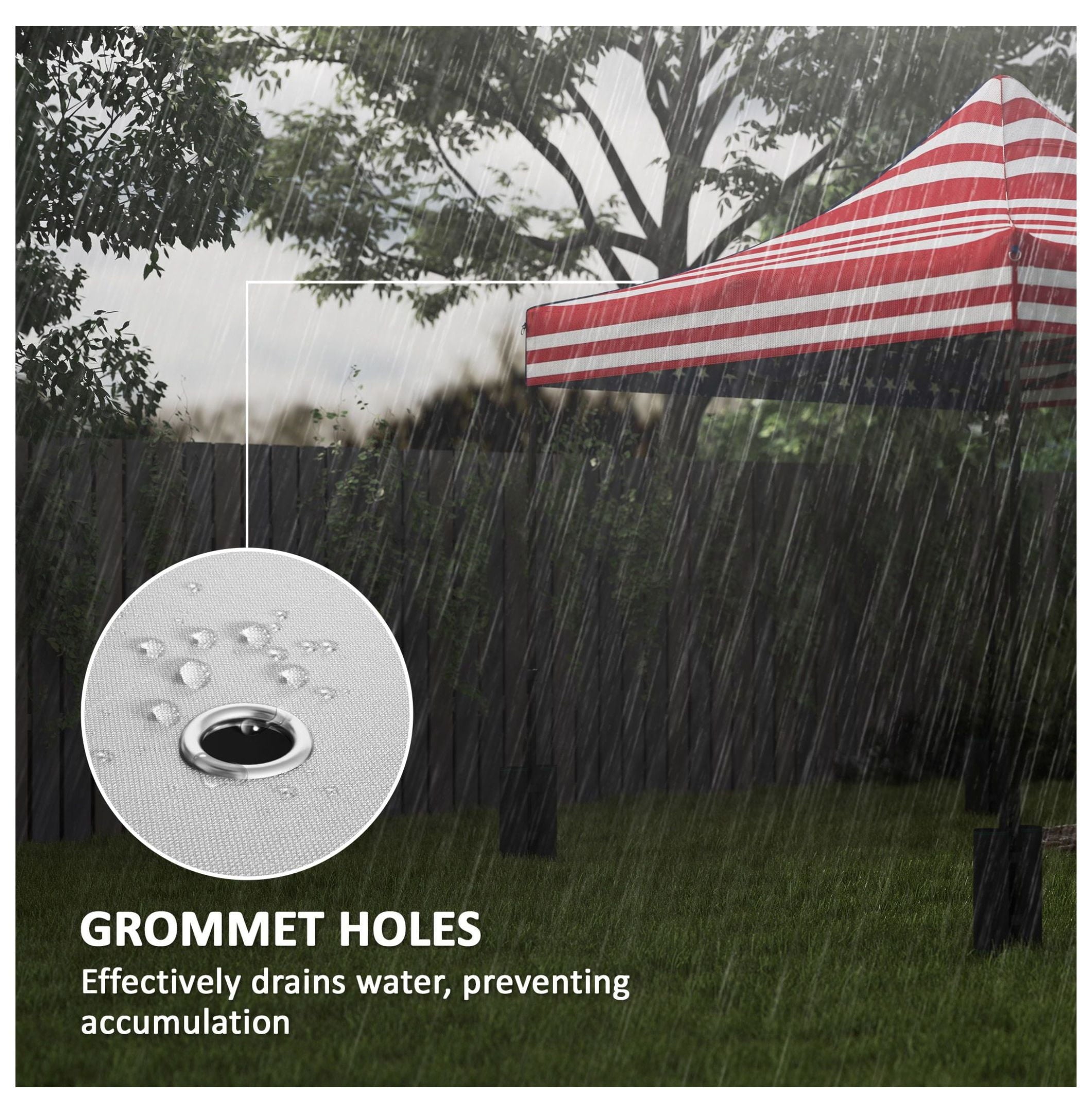 - 【Innovative Water Drainage】: Equipped with strategically placed grommet holes to effectively drain water; prevents water pooling and accumulation, maintaining the canopy’s lightweight design and structural integrity; promotes a dry and comfortable environment.