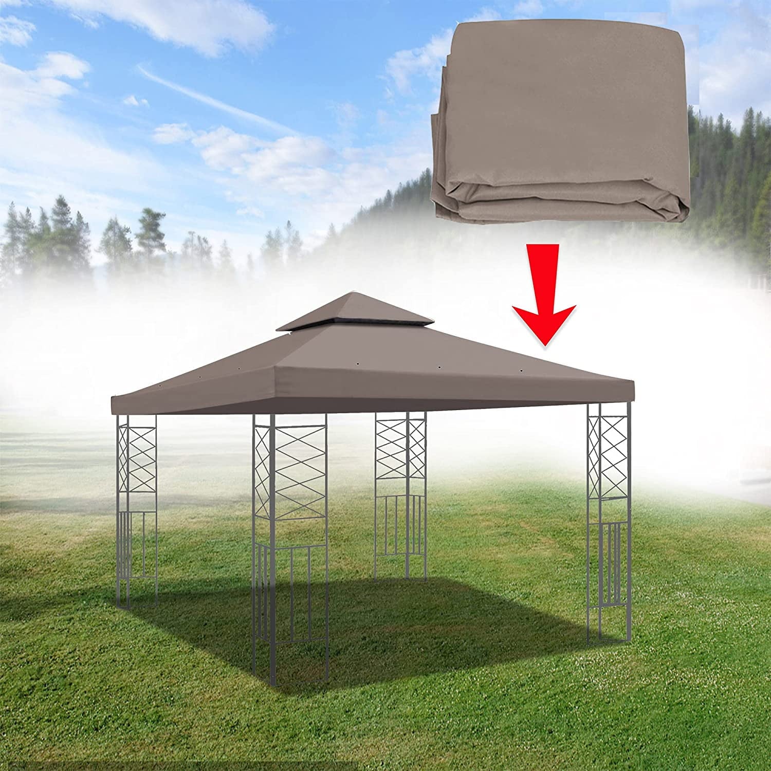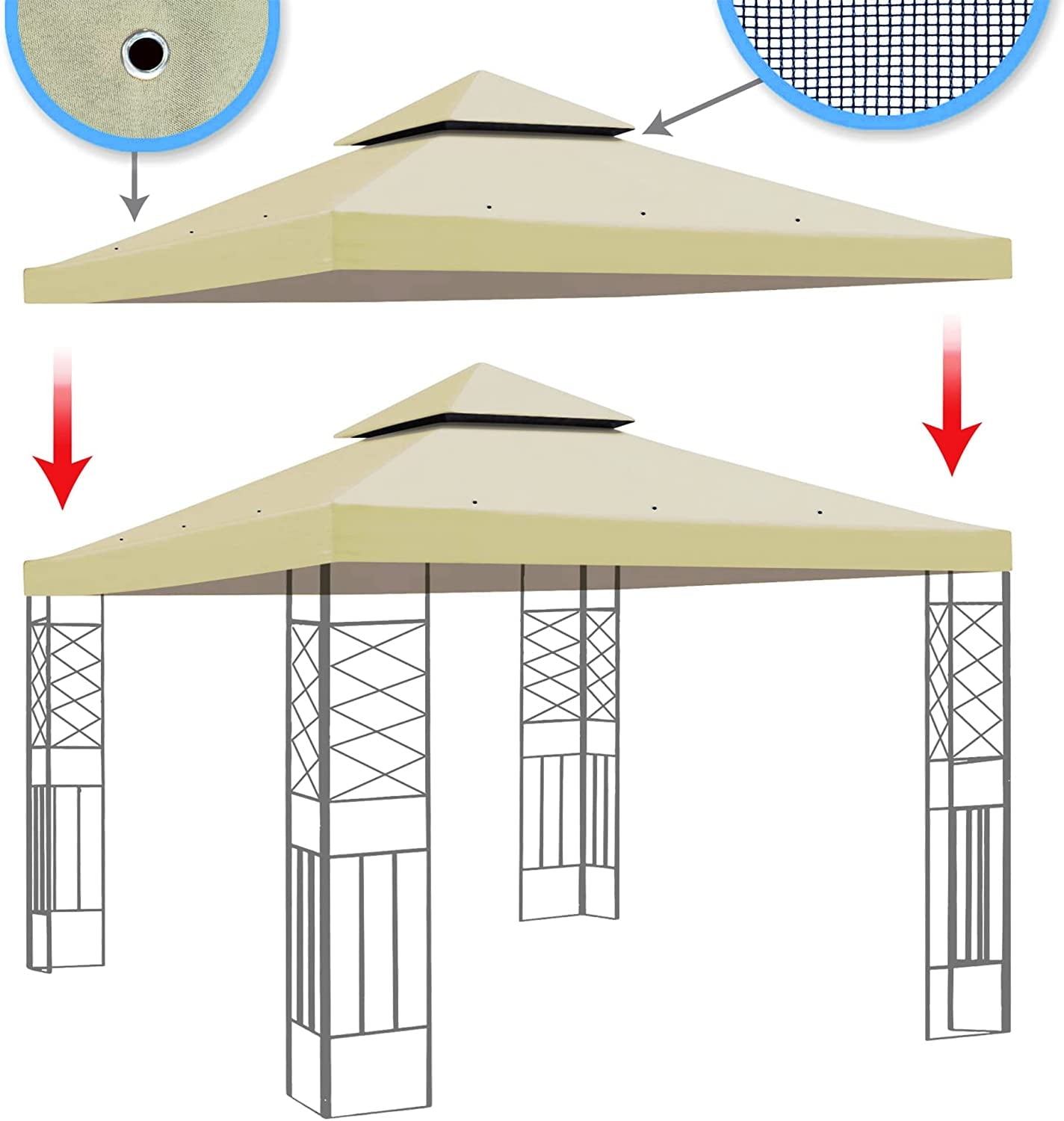 Size: 10′ x 10′, Replacement Canopy Top for 10ft x 10ft 2 Tier Gazebo Frames, Gazebo Frame is NOT included, Made of Polyester Material