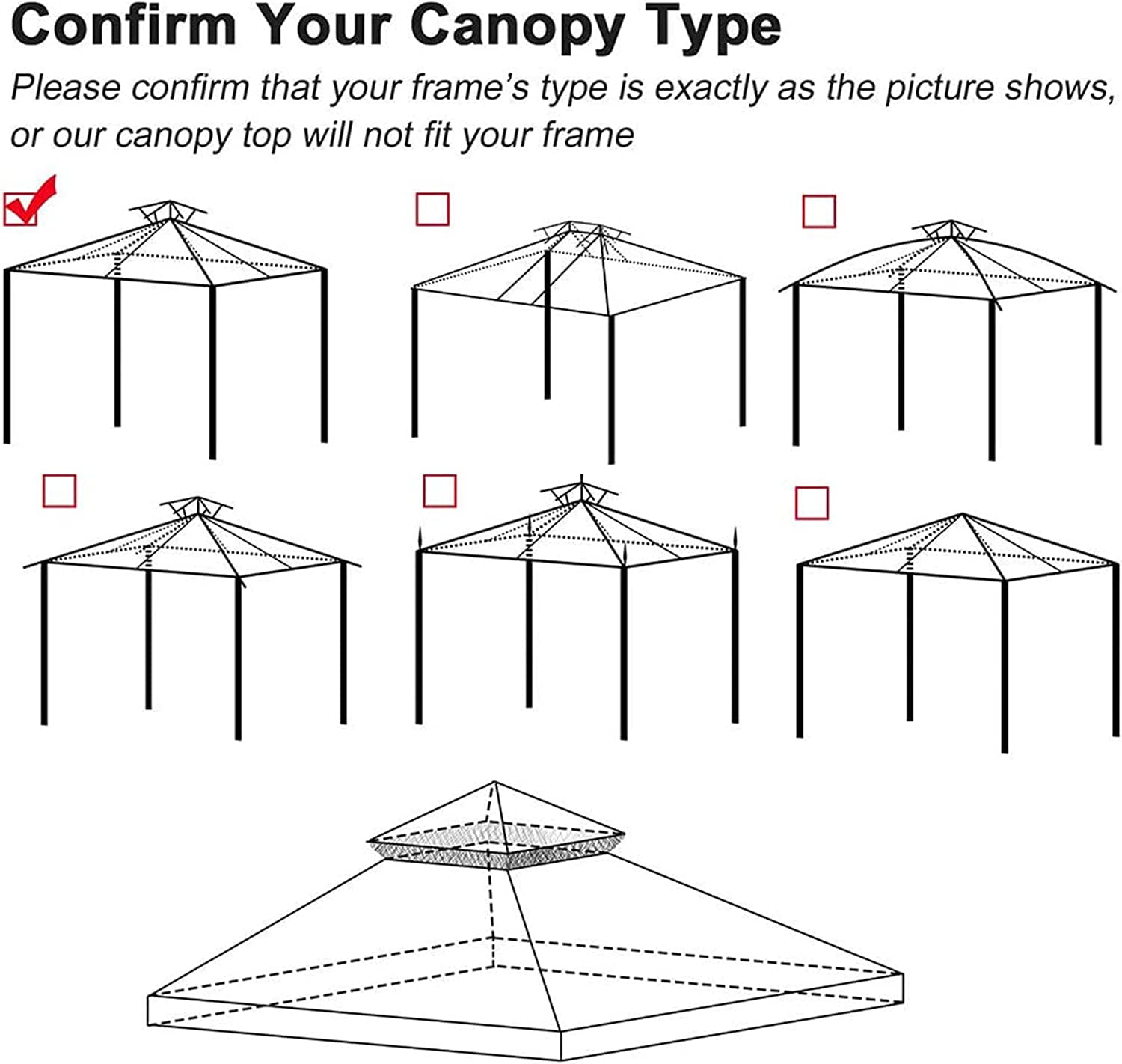 Easy to Install: This is a 10×10 canopy replacement top for a 10*10ft 2-tier gazebo frame. Our canopy top replacement will fit perfectly with 10*10ft tents. Lightweight, environmentally friendly materials, easy to use and store. Velcro straps can be easily installed and secured to the gazebo.