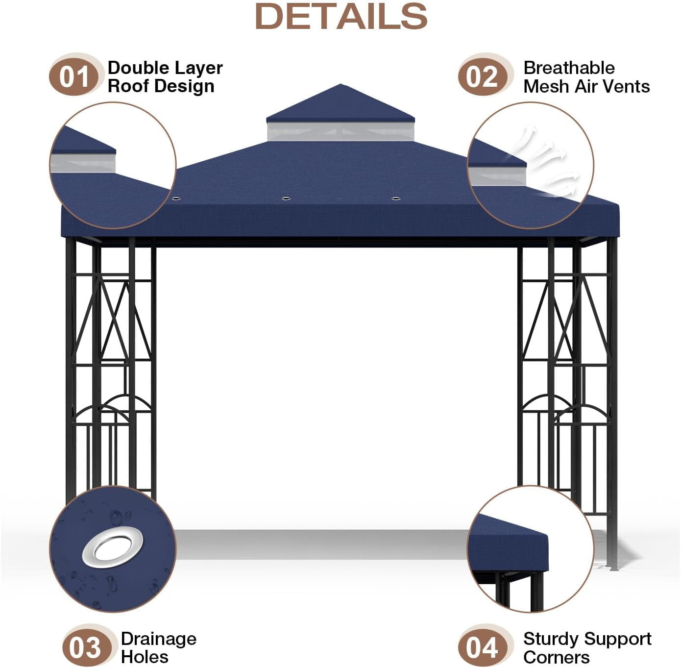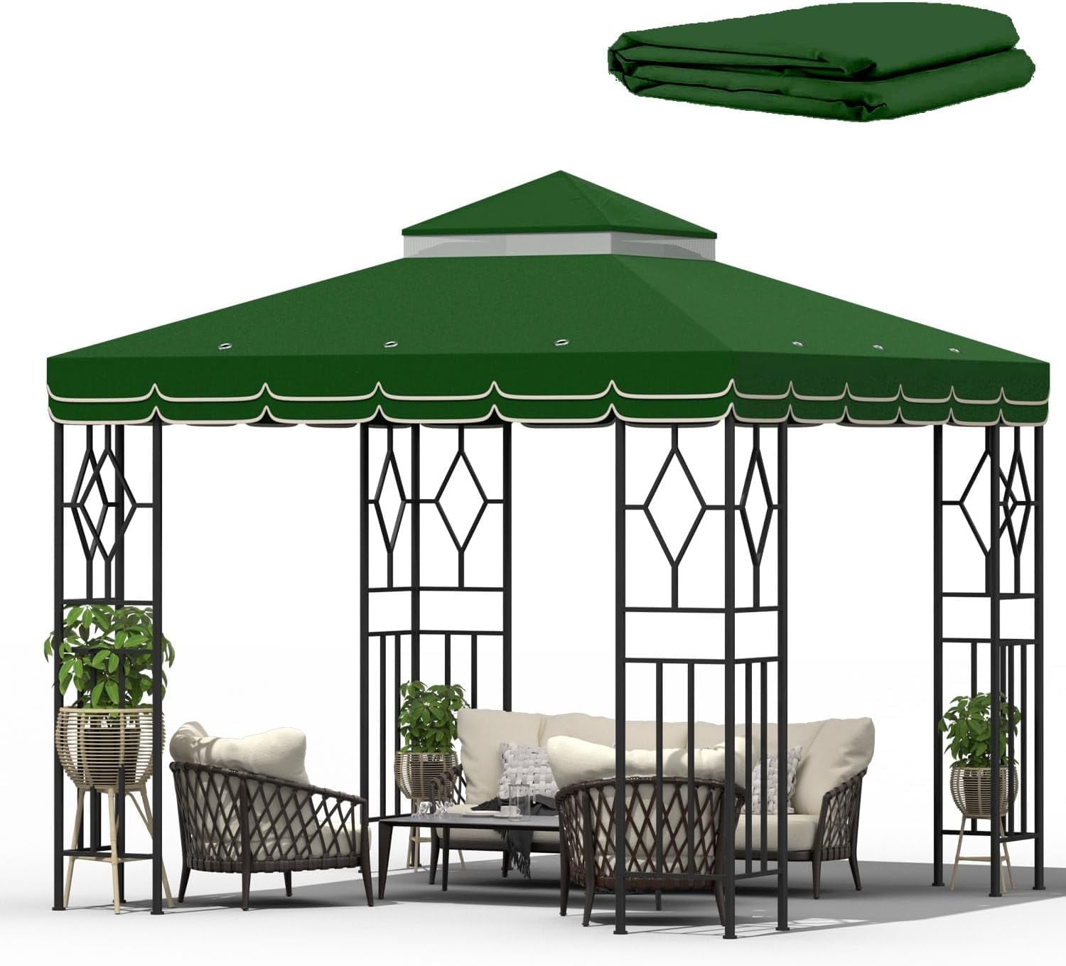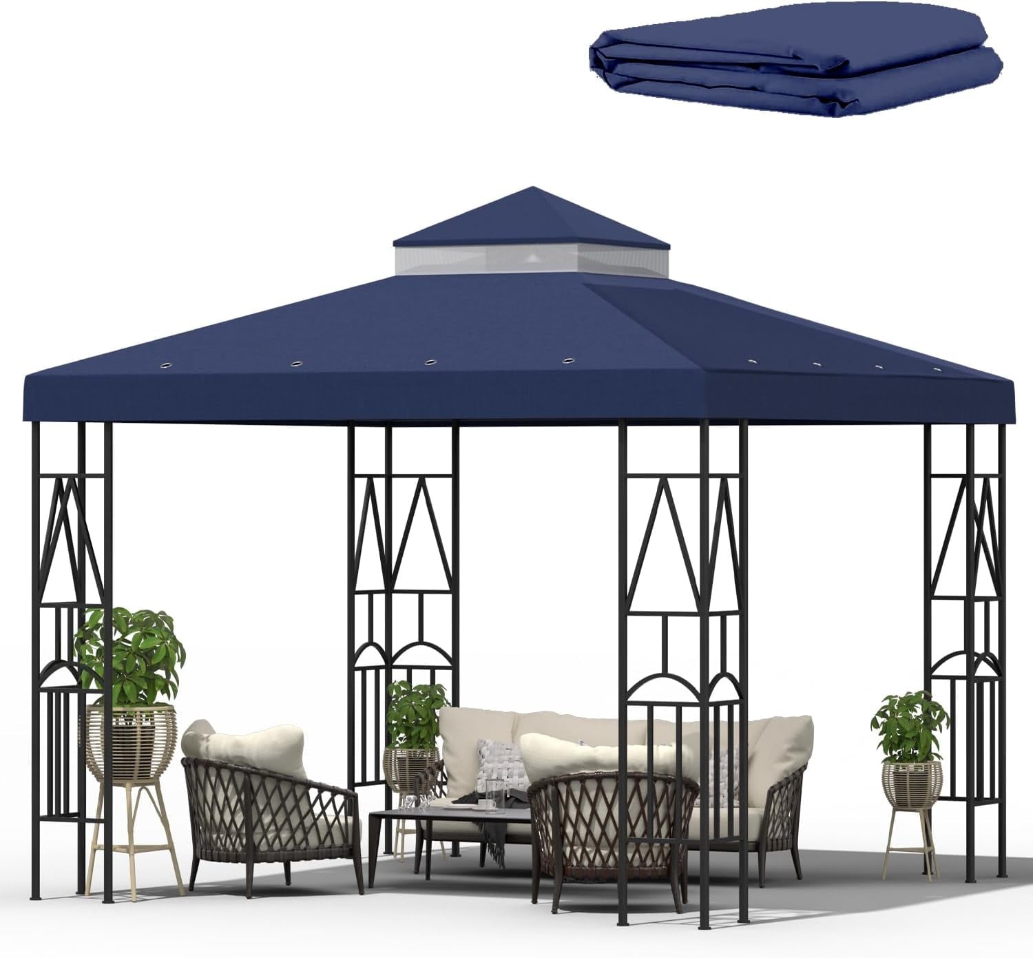 ⛺【Easy to Install】This is a 10×10 canopy replacement top for a 10*10ft 2-tier gazebo frame. Our canopy top replacement will fit perfectly with 10*10ft tents. Lightweight, environmentally friendly materials, easy to use and store. Velcro straps can be easily installed and secured to the gazebo.