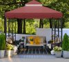 ⛺【Double-Roof Design】Double vented roof, two-tiered soft top canopy , and a mosquito gauze net in the middle of the double top cover, the unique design allows the wind and gril smoke to pass through quickly.