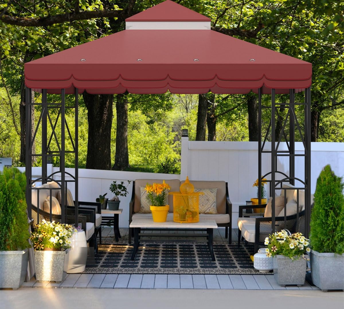 Fits your 10′ x 10′ double-roof gazebo frame, perfect for making your gazebo shiny and fresh.The classic double lace shape looks playful and cute, plus the great color scheme adds a splash of color to your patio.