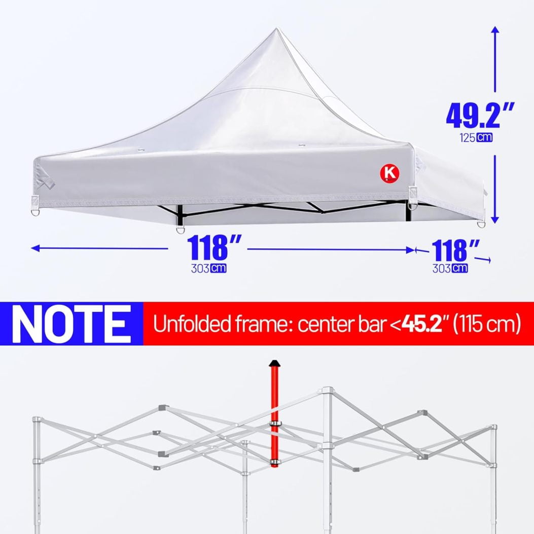Home Outdoor Canopies 10×10 Canopy Replacement Top – Heavy-Duty 600D Oxford Fabric with 8 Drainage Holes, Waterproof & 99% UV Resistant Tent Cover for Pop-Up Canopy, Professional Replacement Top Only (White)