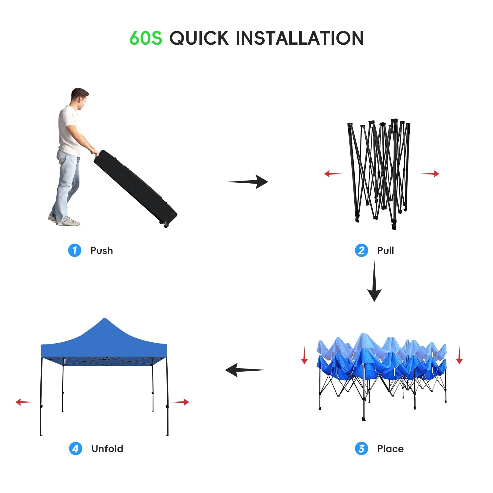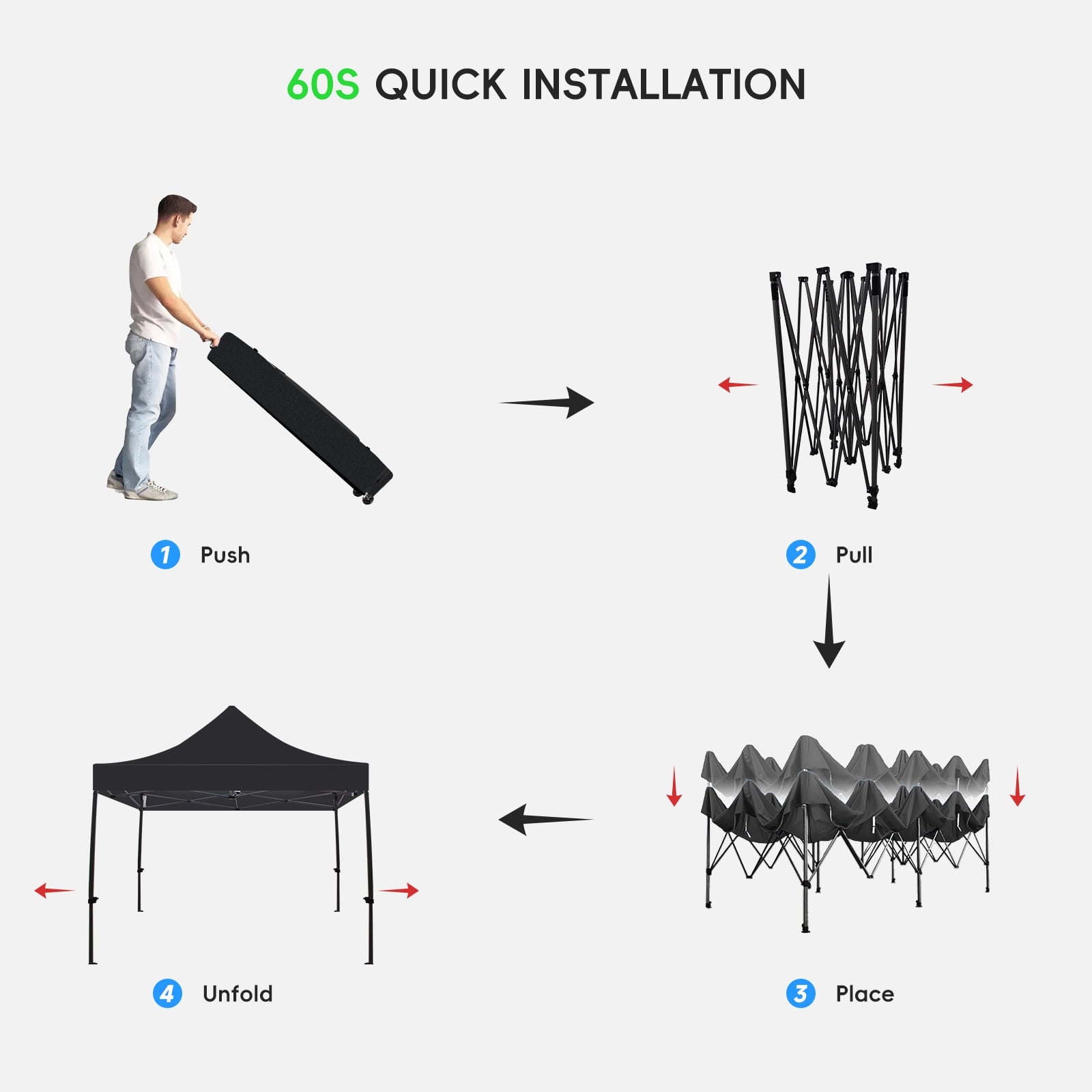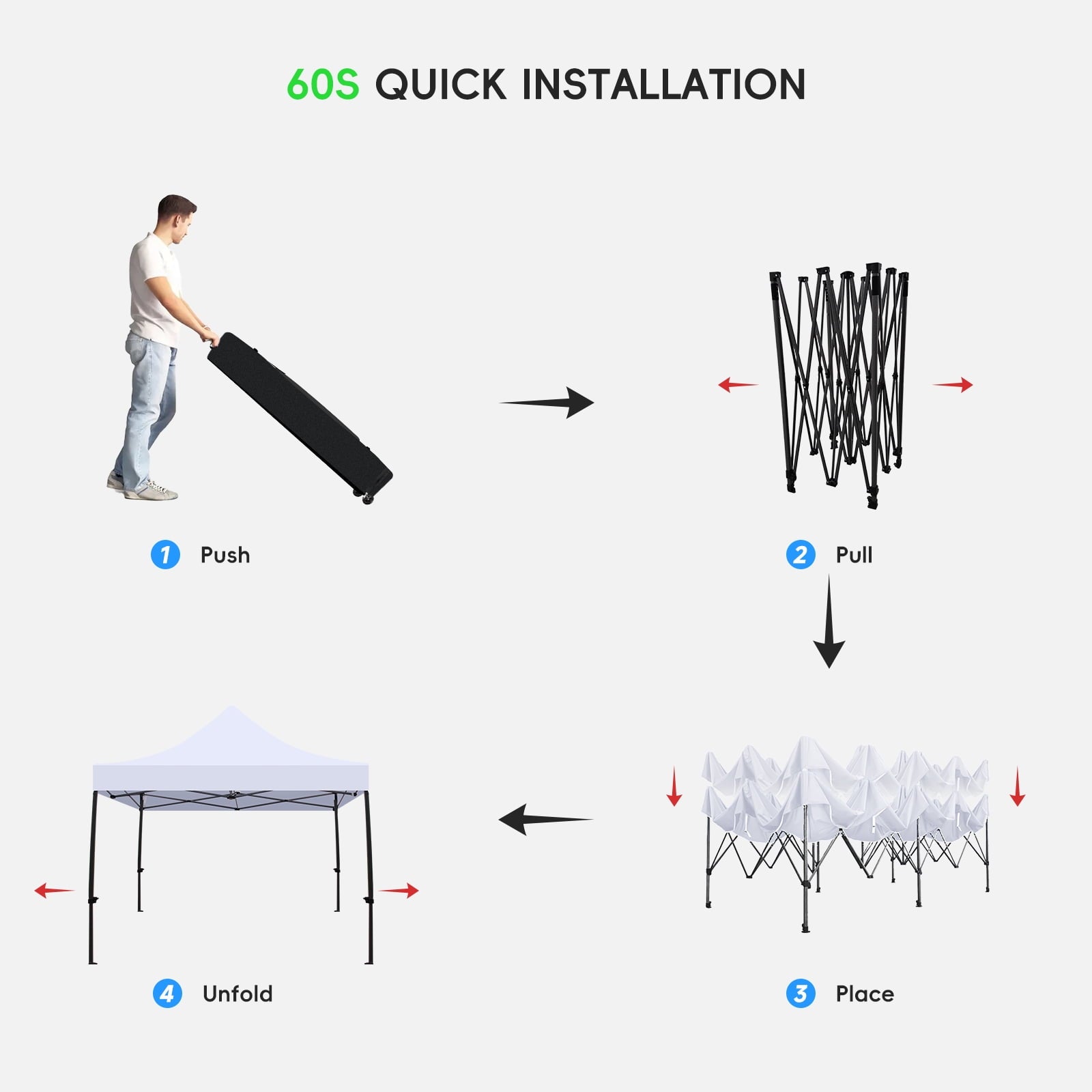 - Effortless Setup–Enjoy a hassle-free setup with our innovative one-button design, allowing you to easily pop up the patio canopy tent in under a minute—perfect for spontaneous outdoor activities.