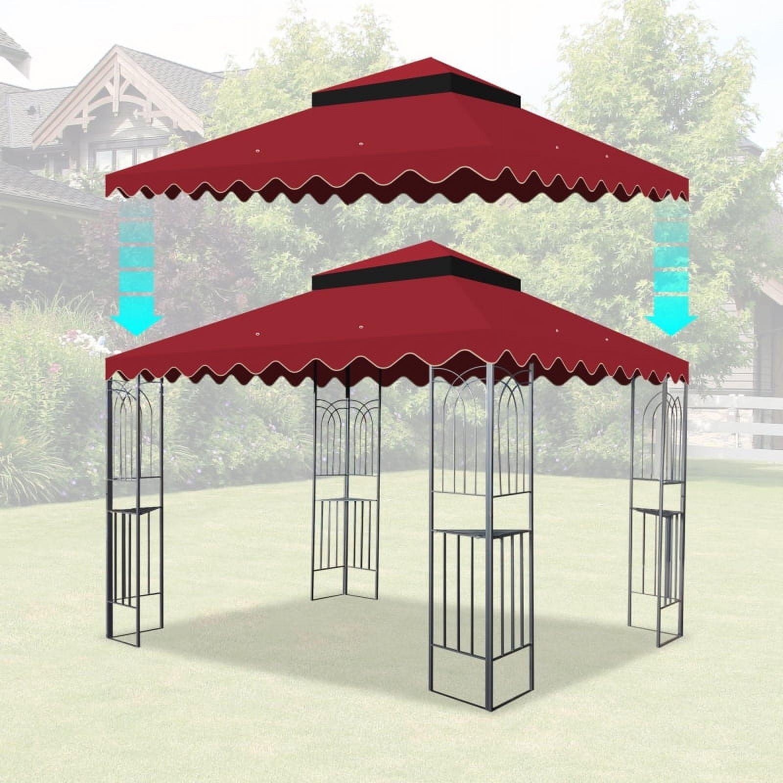 This item is is suitable for 10 x 10 Ft gazebo frame,and it’s replacement canopy only and metal structure is not included. Please confirm your requirements and the gazebos size before purchase. Perfect for your outdoor leisure time, it lets you enjoy the touch of nature you want from the outdoors with the shelter you need. The fabric is polyester with UV protection, water-repellent, weather fastness. providing you pleasing and cozy get-together with your family or your friends.