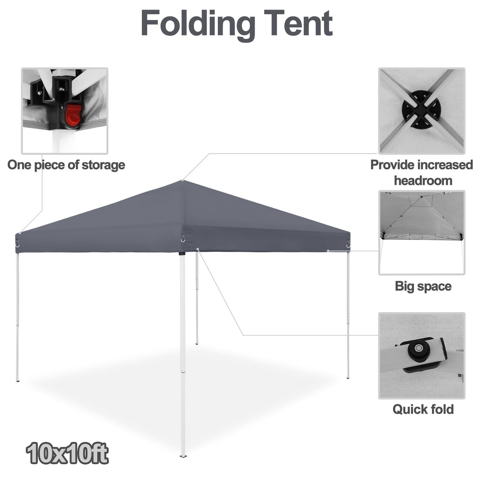 10×10 Pop Up Canopy Tent Instant Outdoor Canopy Easy Set Up Straight Leg Grey
