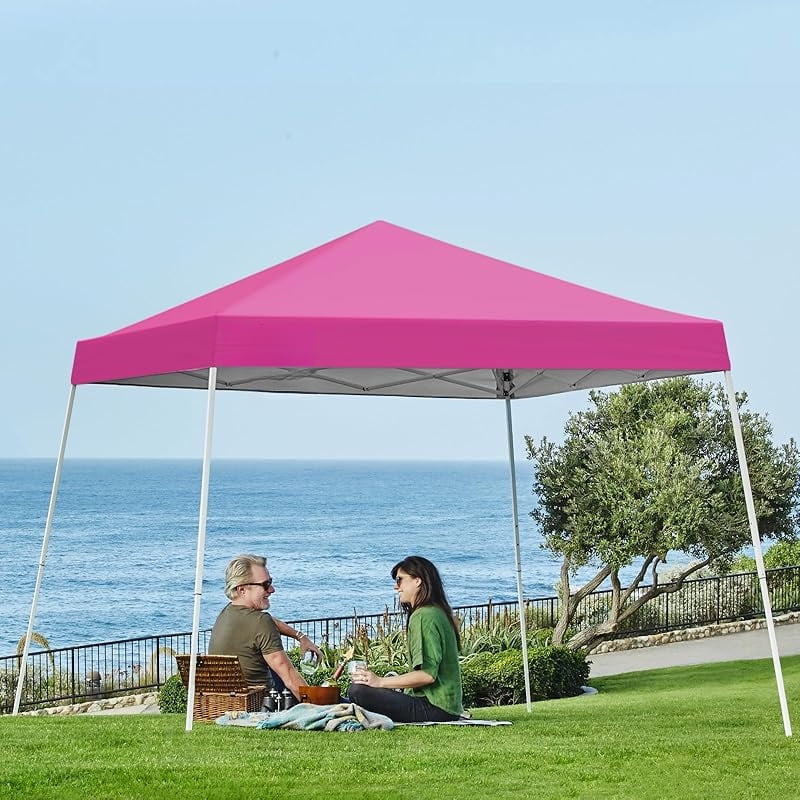 Home Outdoor Canopies 10×10 Slant Leg Pop-up Canopy Tent Easy One Person Setup Instant Outdoor Beach Canopy Folding Portable Sports Shelter 10×10 Base 8×8 Top (Pink)-xlk