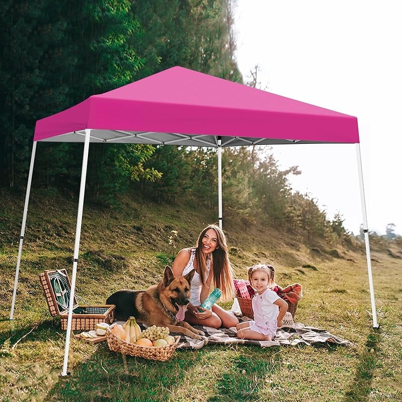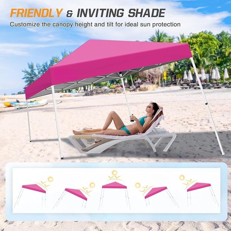 10x10 Slant Leg Pop-up Canopy Tent Easy One Person Setup Instant Outdoor Beach Canopy Folding Portable Sports Shelter 10x10 Base 8x8 Top (Pink)-xlk