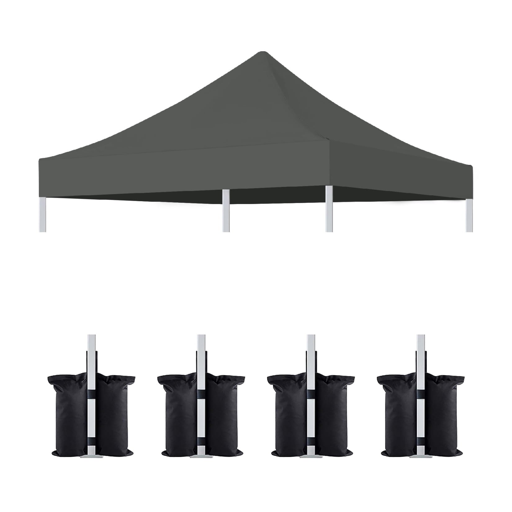 The 10×10 Waterproof Canopy Replacement Top with 4-Piece Sandbag Set combines rugged durability and effortless convenience for all your outdoor needs. Crafted from 600D polyester with a waterproof PU coating, this canopy delivers UPF 50+ sun protection and rain resistance to shield you from harsh weather. Heat-sealed seams ensure 100% waterproof performance, while the gray fabric offers privacy and blends seamlessly into any outdoor setting. Designed for standard 10x10FT frames with straight legs, its quick-install magic tape straps enable tool-free setup in minutes. The included sandbag set stabilizes the structure in windy conditions, making it ideal for trade shows, camping trips, festivals, or backyard gatherings. Measuring 10′ W x 10′ D x 3.3″ H when installed, it weighs only 10.54 lbs and packs into a compact 17.72″x17.72″x2.76″ box for easy storage and transport. Verify frame compatibility before purchase to ensure seamless replacement for damaged canopies or backup coverage. Trusted by commercial users and homeowners alike, this versatile solution handles rain, snow, and strong winds while maintaining reliable shelter.