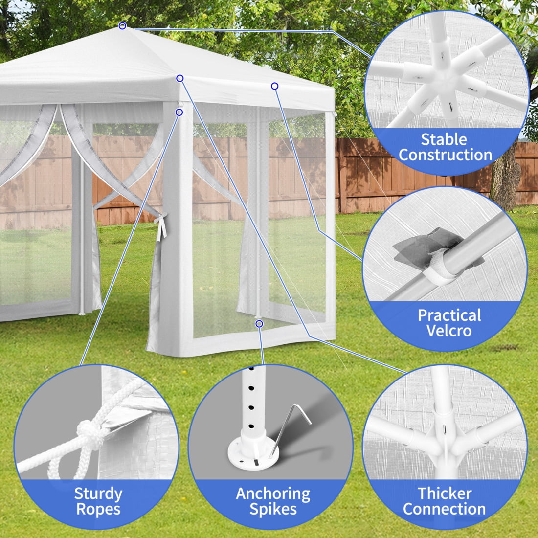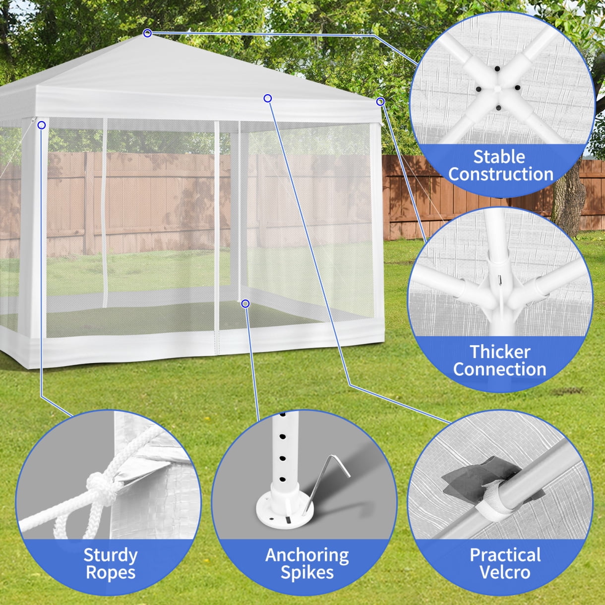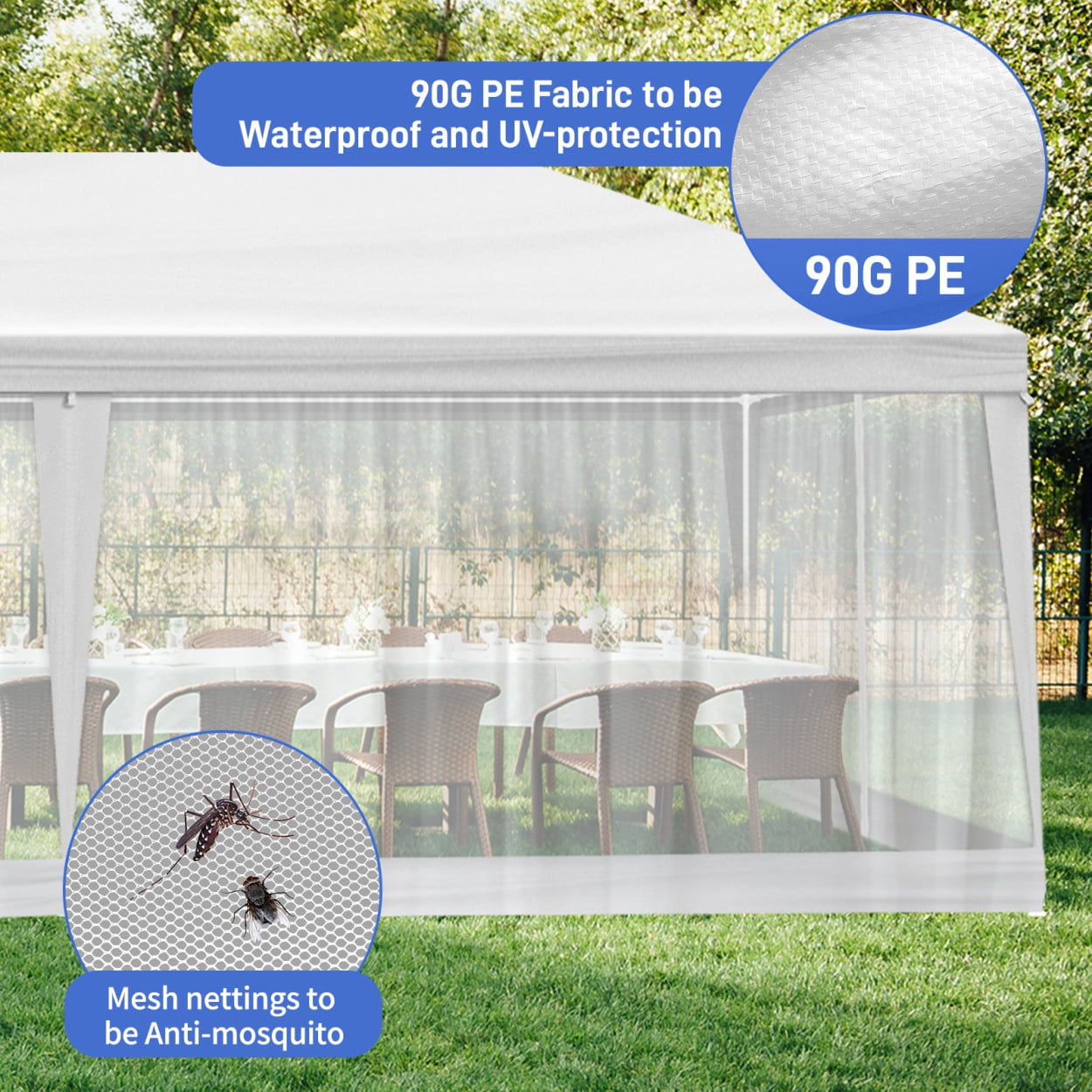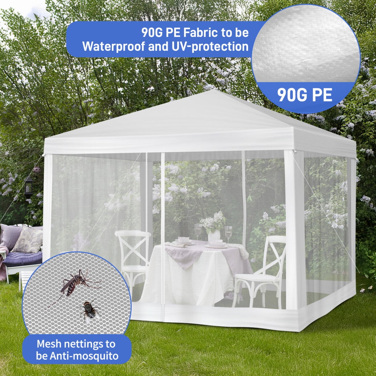 - 【Meshing Netting Sidewalls】Our meshing netting sidewalls effectively keep insects and mosquitoes out, ensuring a bug-free environment so you and your guests can relax and enjoy celebrations without any pesky interruptions.