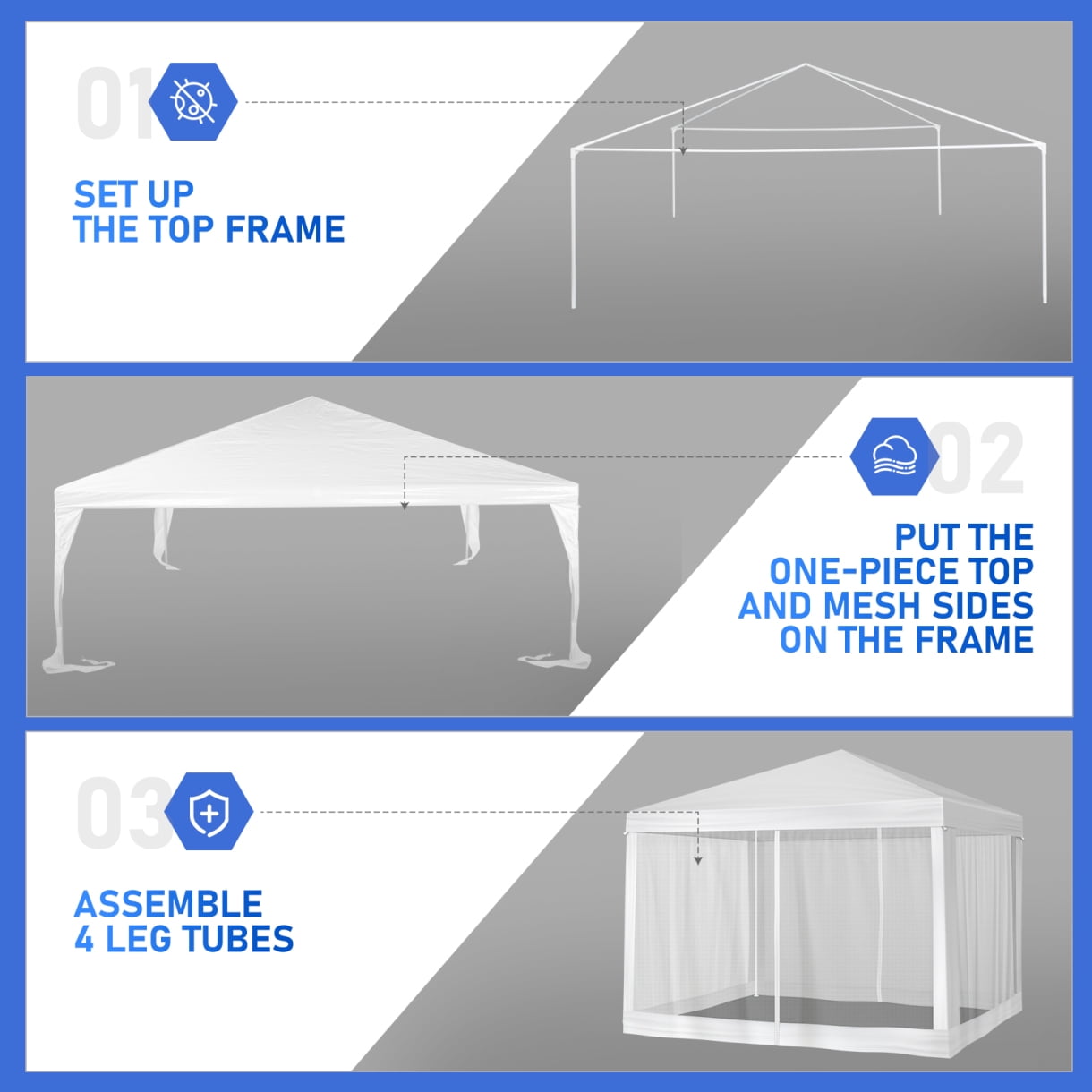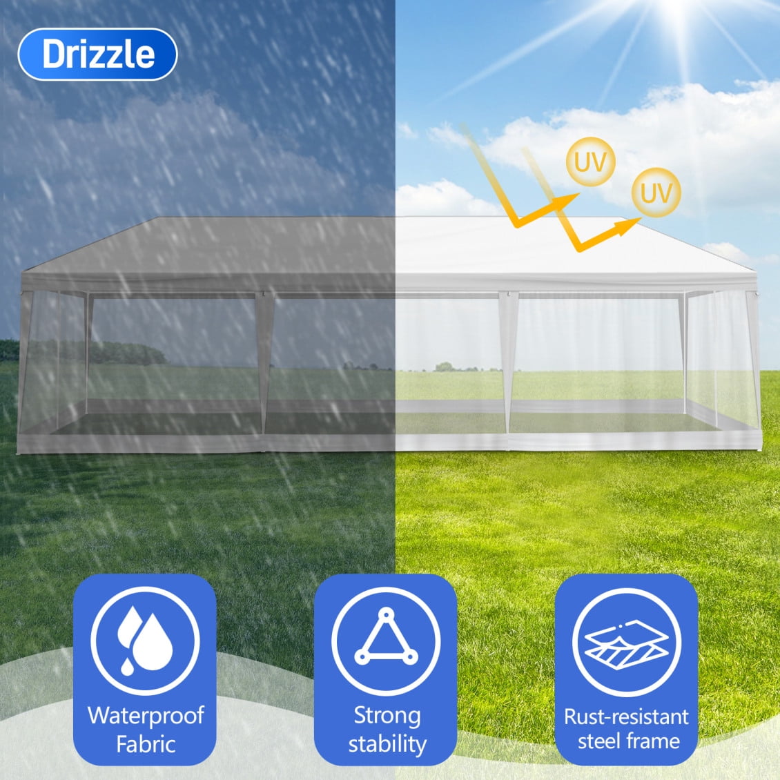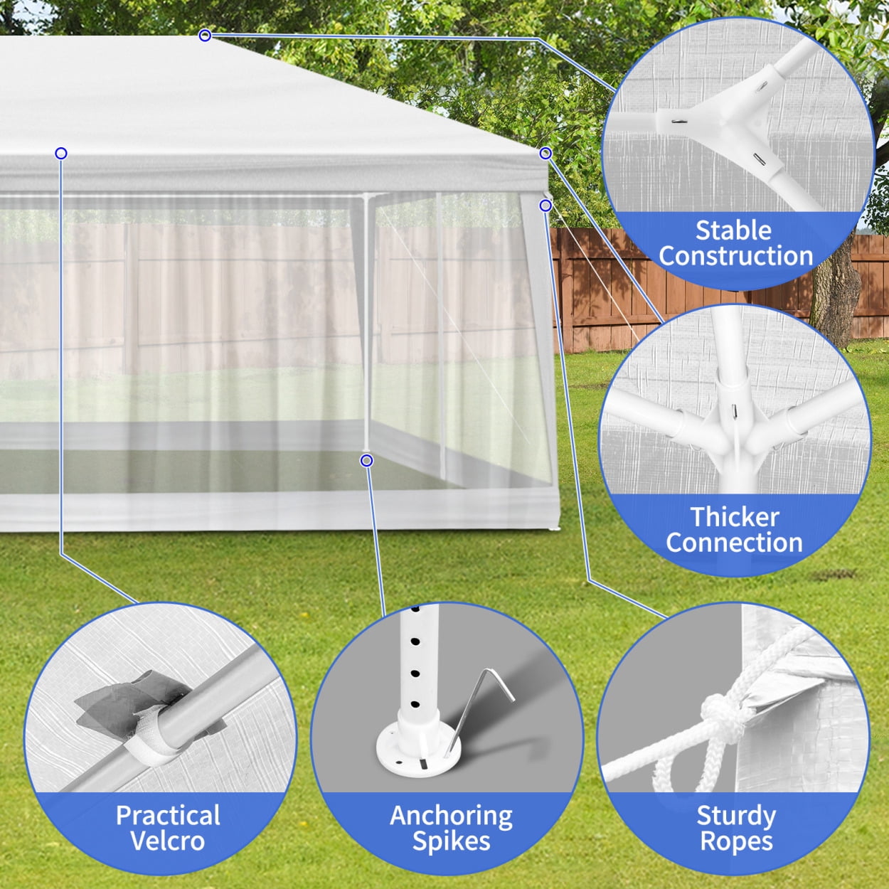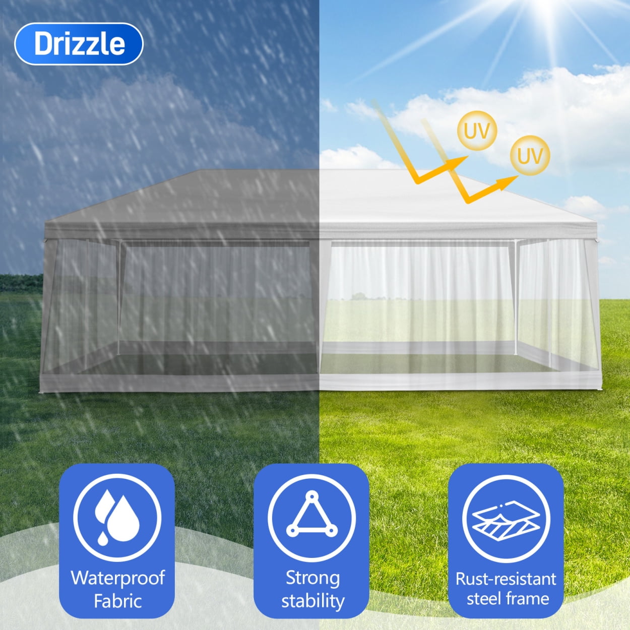 - 【Meshing Netting Sidewalls】Our meshing netting sidewalls effectively keep insects and mosquitoes out, ensuring a bug-free environment so you and your guests can relax and enjoy celebrations without any pesky interruptions.