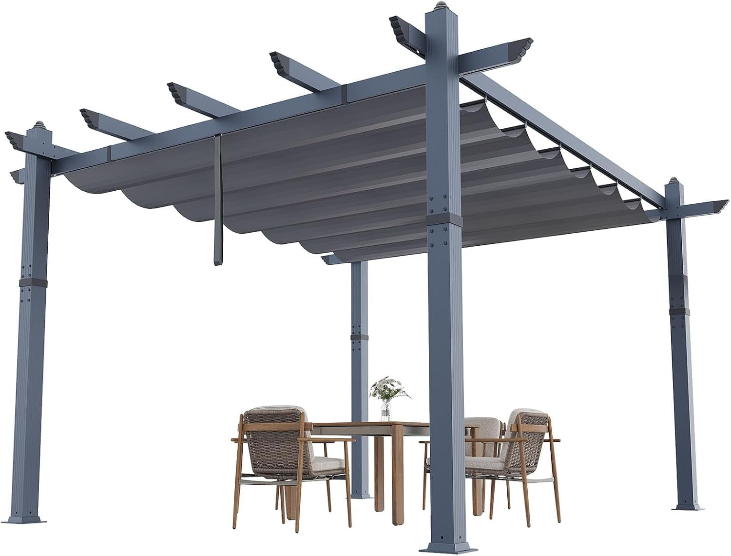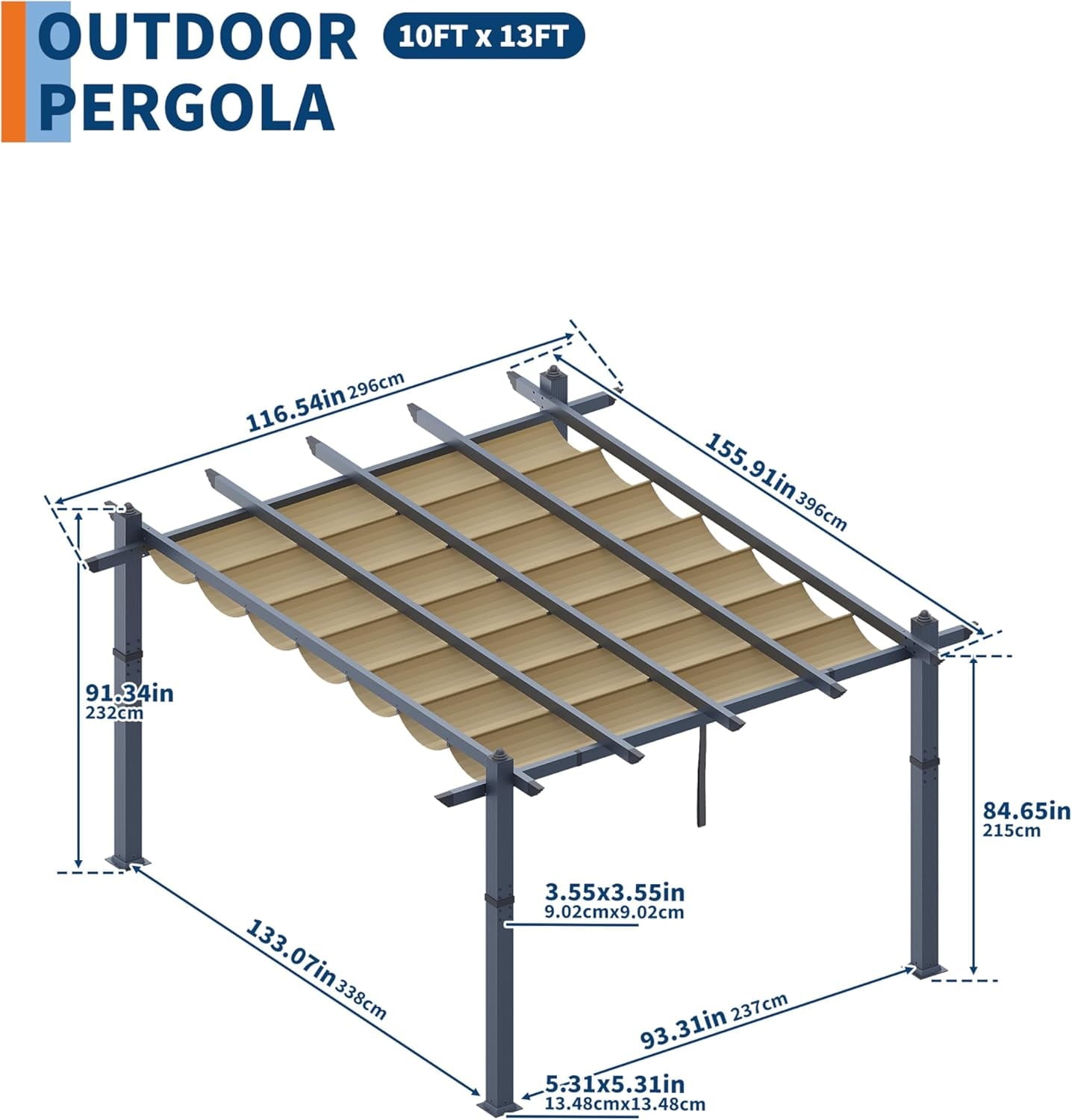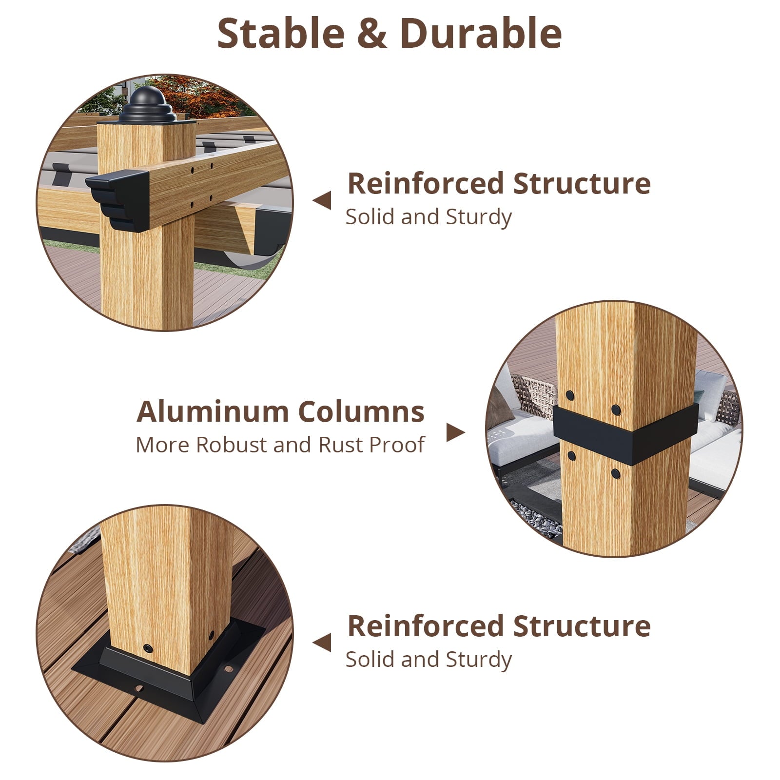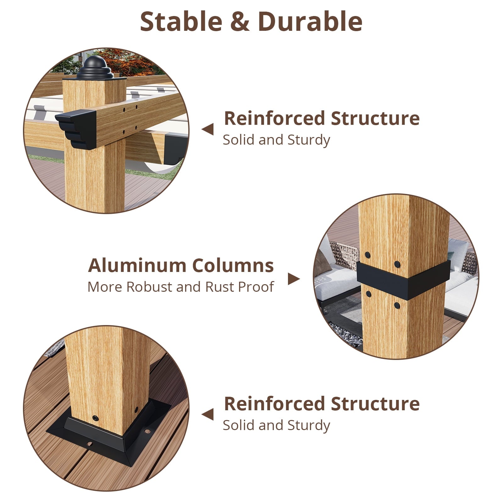 Home Gazebos 10×13 Ft Aluminum Pergola,Outdoor Metal Gazebo with Adjustable Canopy,Reinforced Frame Outdoor Shelter for Backyard,Patio Lawn and Deck – Wood grain beige
