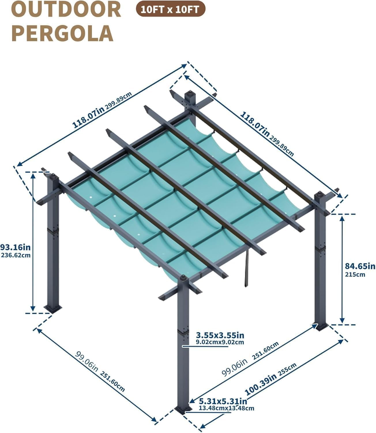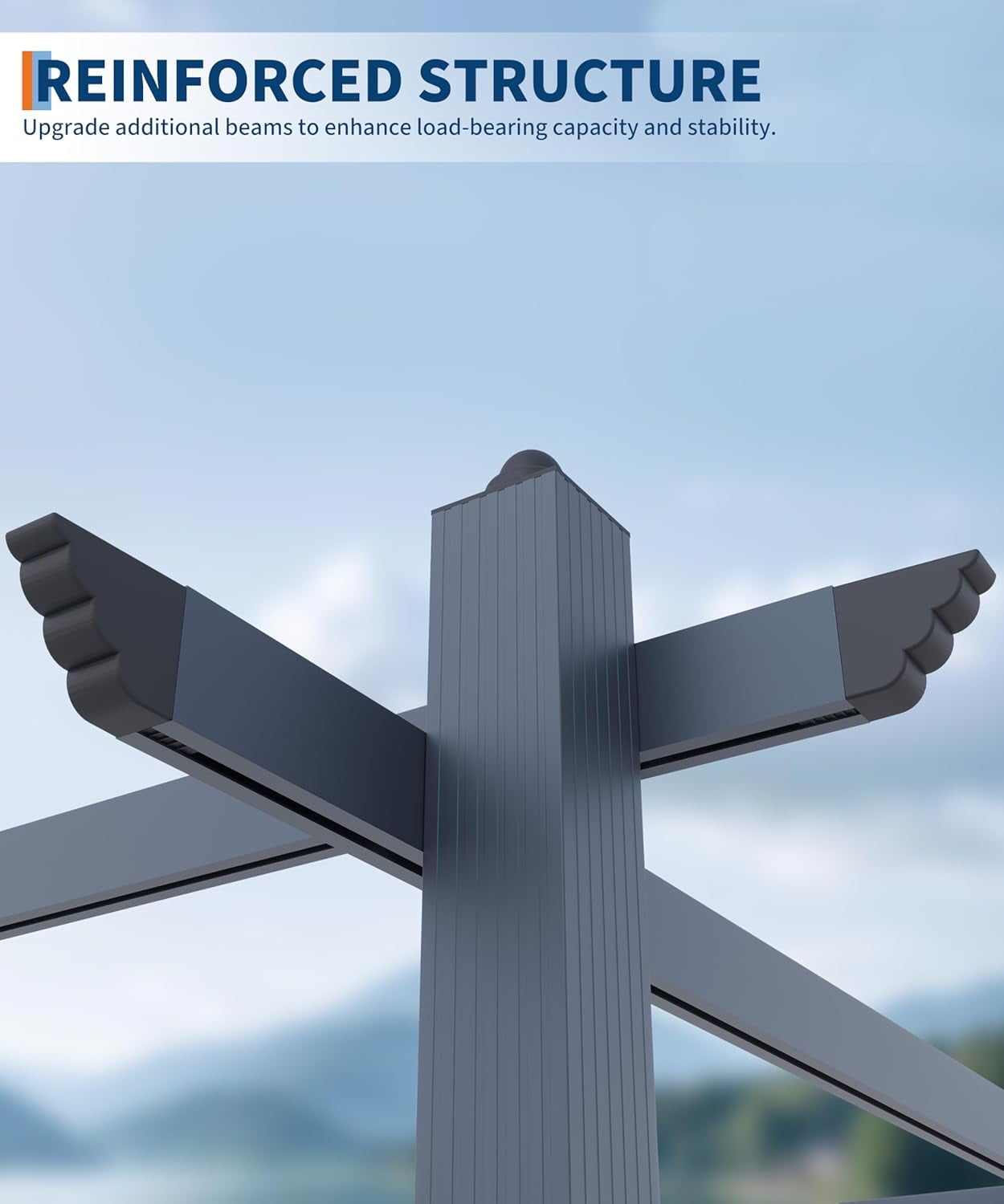 • 【Upgraded Frame Craftsmanship】- Our outdoor pergola features a powder-coated finish, with a wall thickness of 1mm, which enhances stability and prevents deformation, ensuring long-term use.