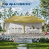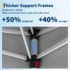 • 【One-Button Push Setup】The 10×10 pop up canopy features a one-touch central locking system. Simply press the central locking mechanism and the entire structure snaps securely into place without the need for any tools. The installation can be completed quickly by one person. 3 adjustable height settings with pinch-free buttons ensure safety, making it perfect for camping, craft fairs, farmer markets, outdoor BBQs, and more