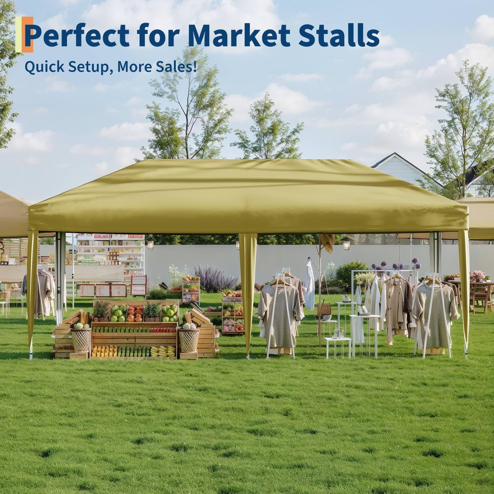 10×20 Pop Up Canopy with 2 Sidewalls – Heavy Duty Outdoor Canopy Tent with Portable Roller Bag, Khaki