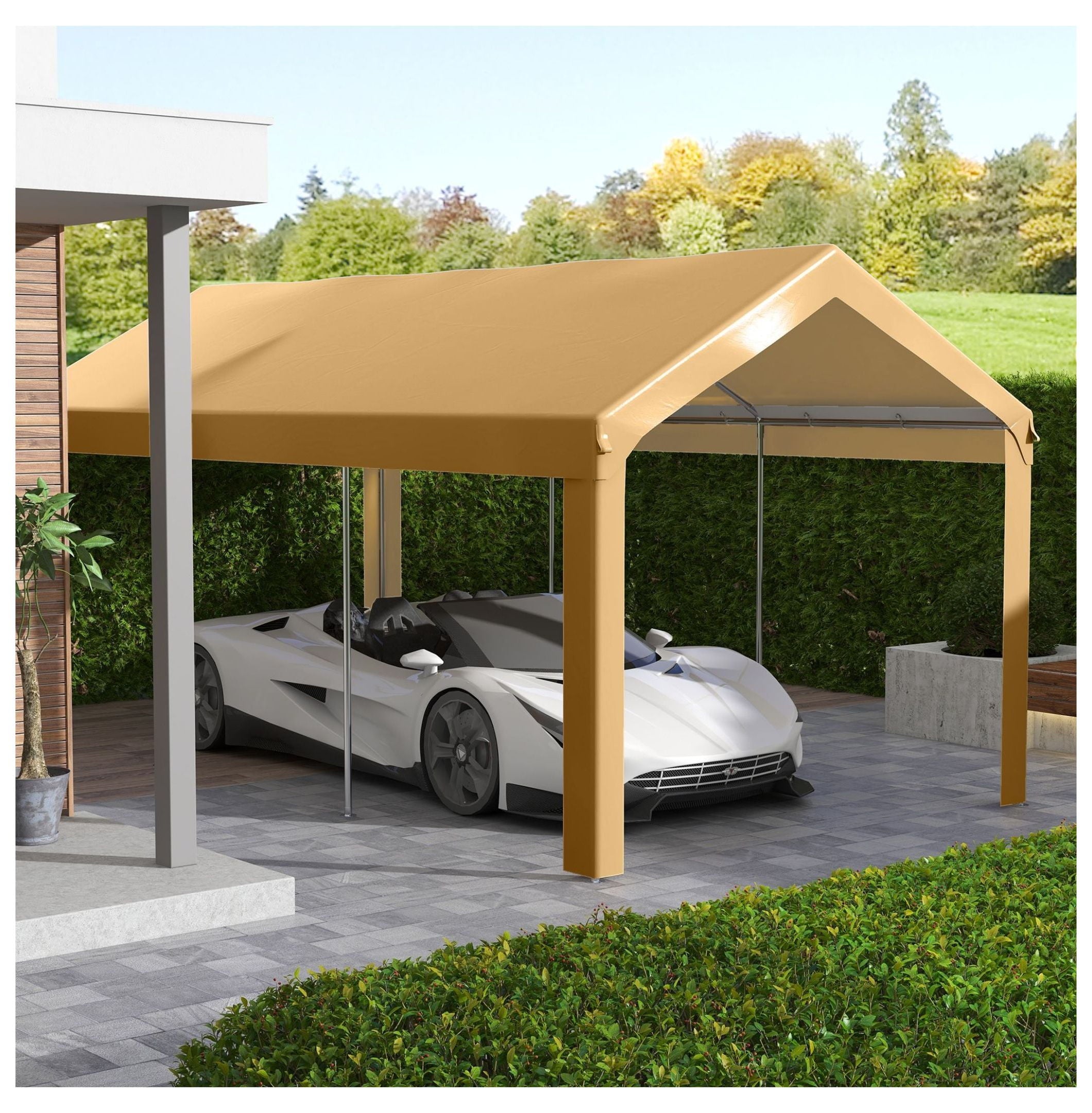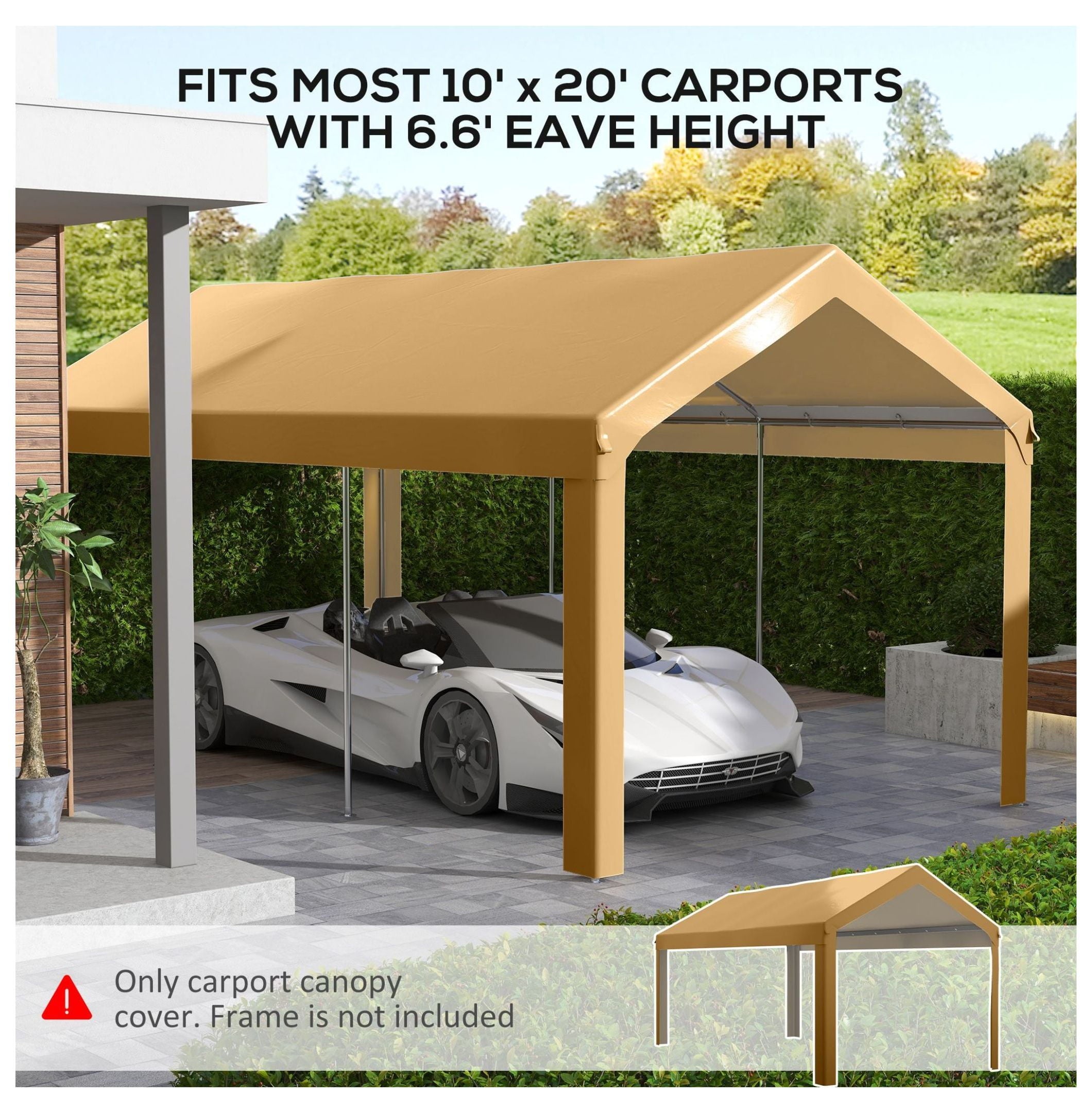Restore your carport with this durable canopy replacement cover; designed for easy installation and reliable protection; this canopy is a guaranteed fit for 84C-378V00 and 84C-206 series carports and may be compatible with other models; crafted from polyethylene material, this canopy shields your vehicle from damaging UV rays, dirt, and light rain; the included bungee cords ensure a secure and snug fit to your carport frame; please verify your carport dimensions before purchasing; overall dimensions are 235.75″ L x 117.25″ W; color is beige; material is polyethylene; this package includes one top cover and 36 ball bungee cords; designed for 10′ x 20′ carports with a 6.6′ eave height; quick and easy assembly requires two people approximately 5-10 minutes; enjoy peace of mind knowing your vehicle is protected from the elements with this weather-resistant canopy; perfect for maintaining the longevity and appearance of your carport; this replacement canopy offers a cost-effective solution to extend the life of your existing carport structure; compatible models include 84C-378V00 and 84C-206; confirm your carport’s size for a perfect fit; this canopy provides essential protection against sun, dirt, and light precipitation; simple installation process with included bungee cords; designed for long-lasting performance and durability.