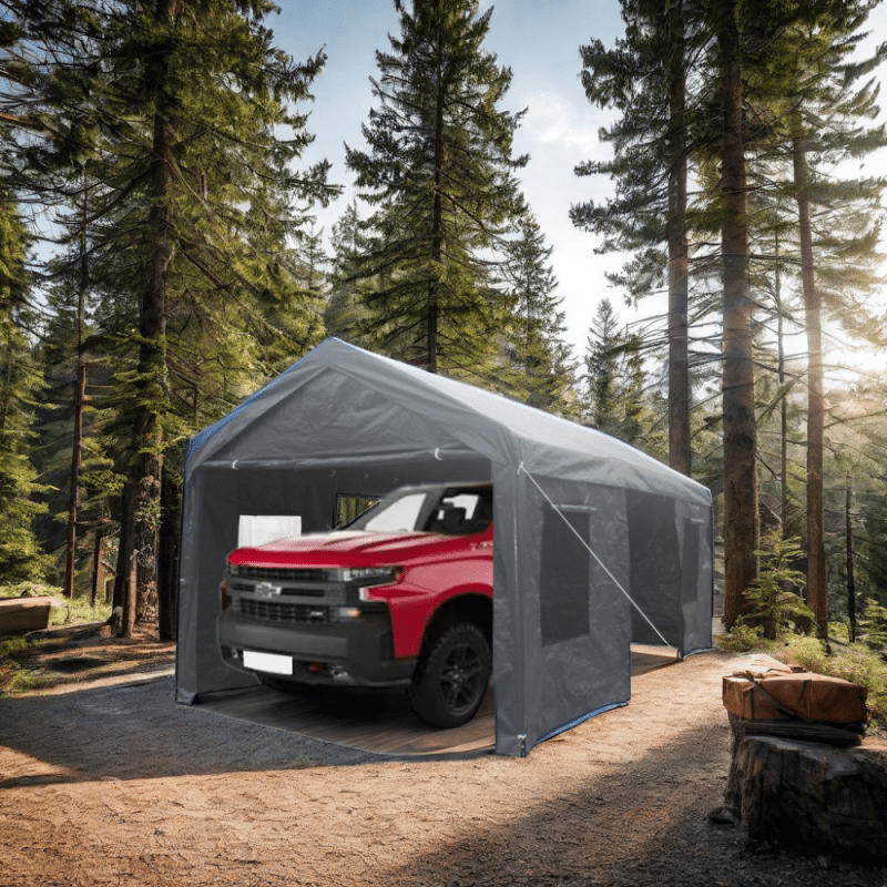 - Durable and Stable Structure: The carport features a stable frame supported by 8 legs, with steel tubes of 1.5 inches and 1.65 inches in diameter that are plastic powdered to prevent rust, chipping and corrosion.