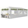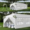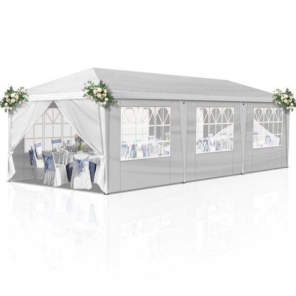 - Key Features:✔ Complete Event-Ready Package8 removable sidewalls (full enclosure option)8 weighted sandbags (12lbs each)16 heavy-duty stakes + 8 guy ropesIndustrial wheeled transport case✔ Military-Grade Durability420D Oxford fabric with silver UV coating (UPF 50+)1.5″ powder-coated steel frame (2000D denier)Reinforced corner joints & cross-bracing✔ Professional Event Advantages3 height adjustments (7.9′-8.8′)Wind-resistant design (up to 30mph when anchored)5-minute setup with 2-person team300 sq.ft coverage (fits 8 banquet tables)Technical Specifications:Frame: 1.5″ powder-coated steelCanopy: 420D Oxford (600mm waterproof rating)Dimensions: 10’W x 30’L x 8.8’HWeight: 93 lbs (42 kg)Sidewalls: 8 panels (full 360° enclosure)Carry Case: 32″ wheeled duffleWhat’s Included:1 x 10x30ft canopy top8 x sidewall panels8 x sandbag weights16 x ground stakes8 x tie-down ropes1 x wheeled storage case1 x assembly manualProfessional Applications:Wedding receptionsCorporate eventsFarmers marketsFood festivalsSporting eventsMilitary/Government use