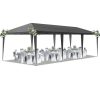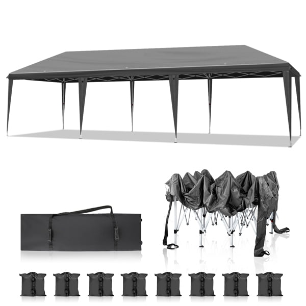 Host flawless gatherings with our 10x30ft commercial pop-up canopy, designed for weddings, markets, and outdoor parties. Featuring 8 removable sidewalls, UV-resistant dark grey fabric, and a heavy-duty steel frame, this complete shelter system provides 300 sq. ft. of shade while standing up to sun, wind, and rain.