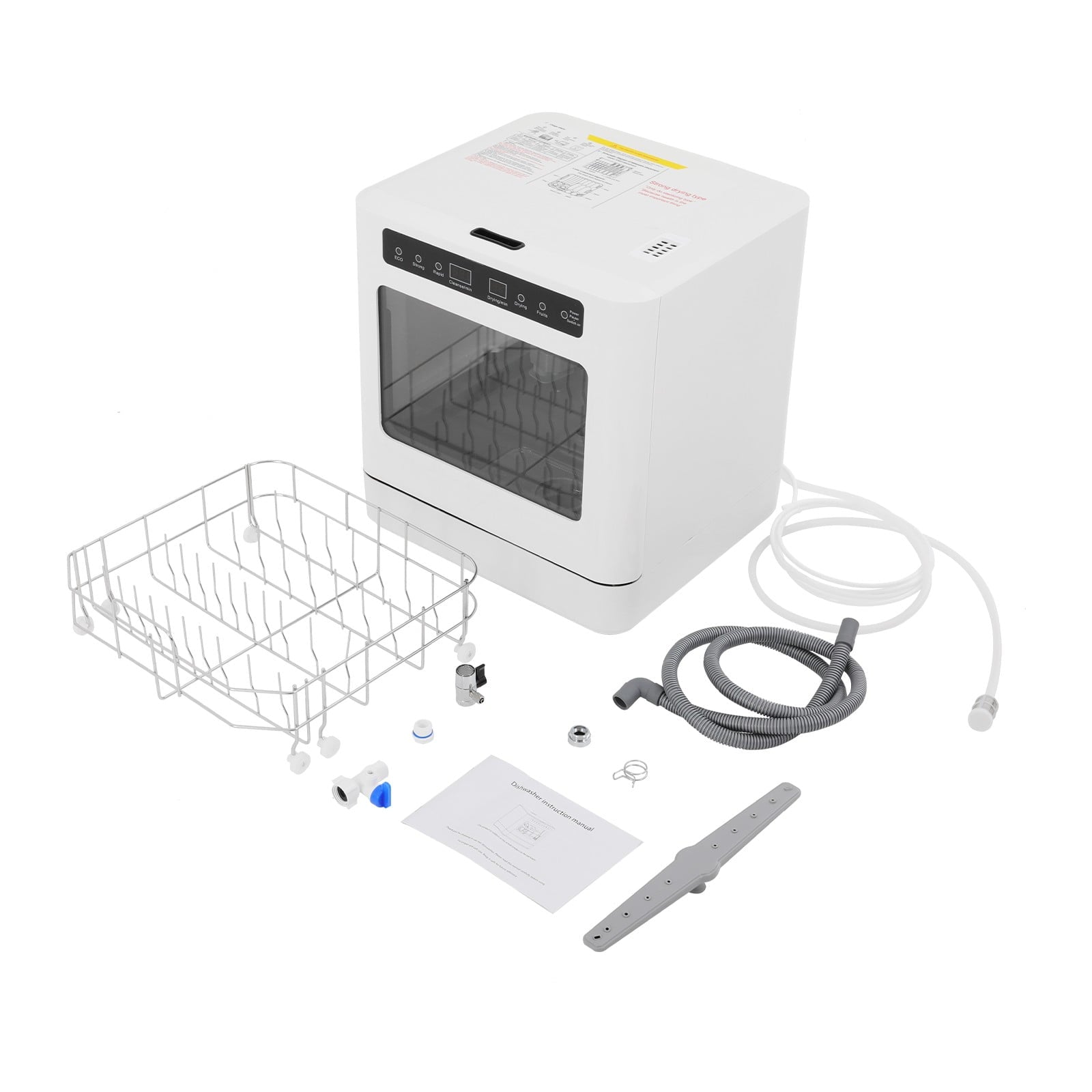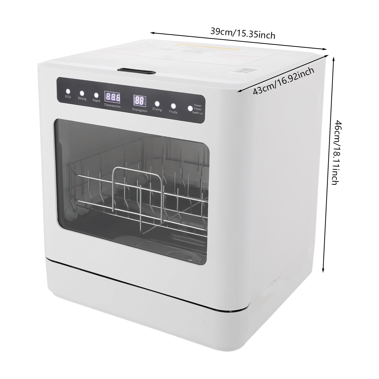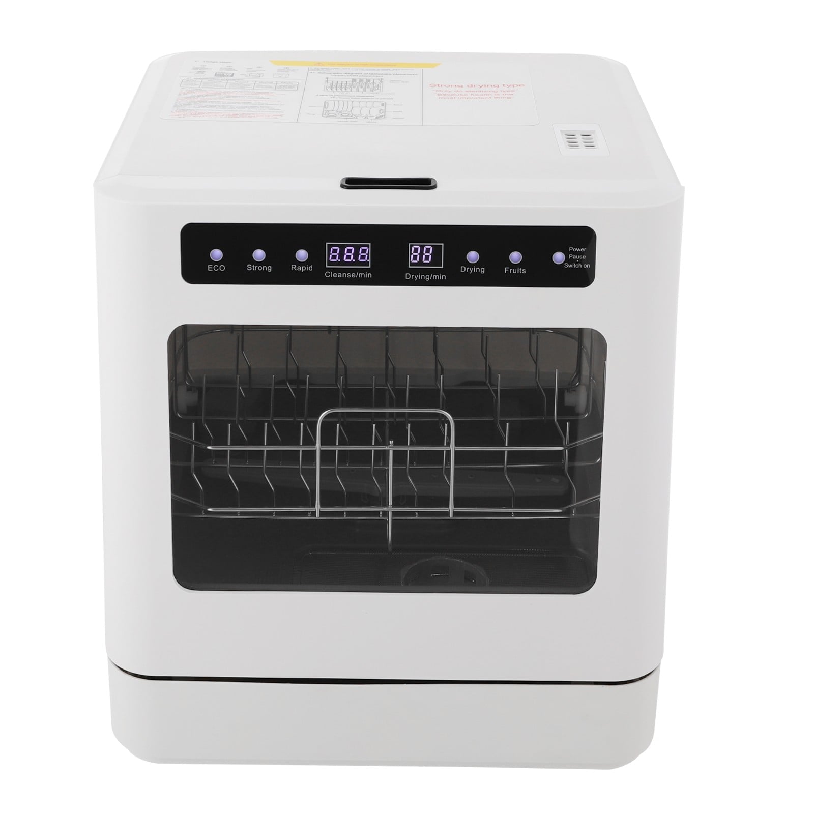 Premium and Durable: Made of ABS and PP, the product is impact-resistant, abrasion-resistant, and durable to ensure your long-term use.Powerful Functions: It has four cleaning modes (ECO, Strong, Rapid, and Fruit) to meet the cleaning requirements of different dishes and items. The upper and lower shower arms work simultaneously to clean stains with a 360-degree rotating spray, and the 161.6°F high-temperature water dissolves grease and effectively removes common bacteria.Healthy Life: It helps remove residues from the surface of fruits and vegetables without damaging their fibers, and high-temperature disinfection technology to further clean the dishes, allowing you and your family to enjoy healthier, cleaner food.