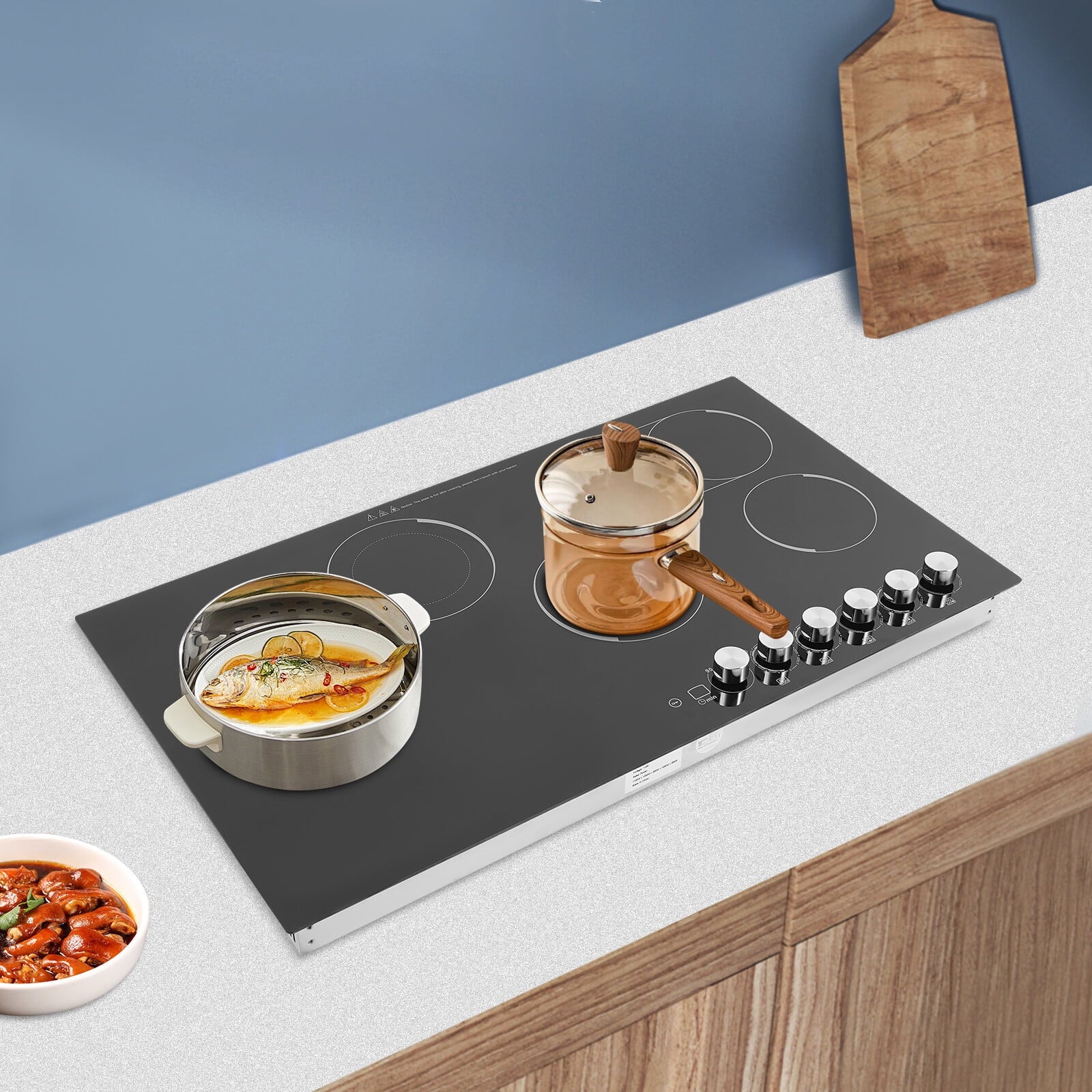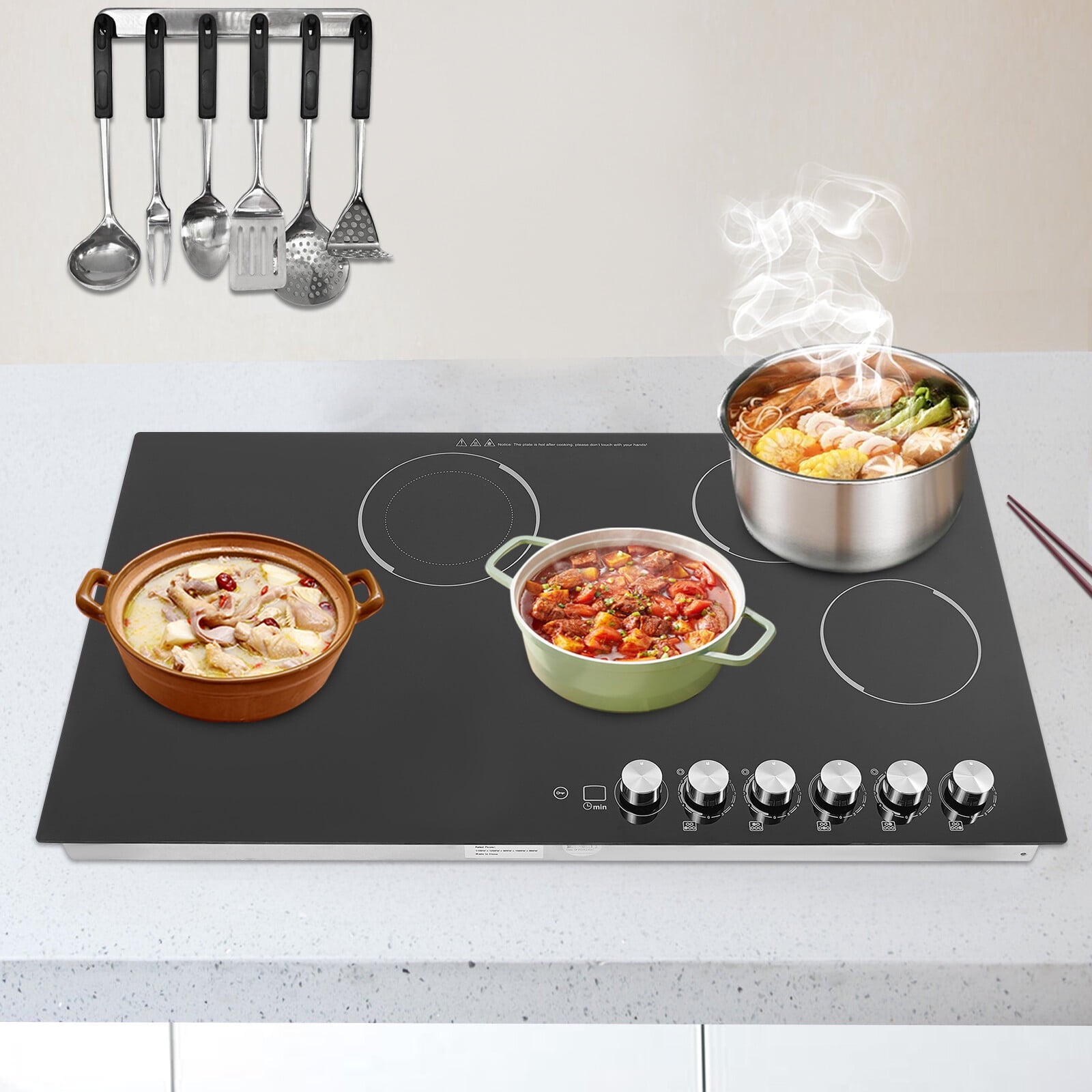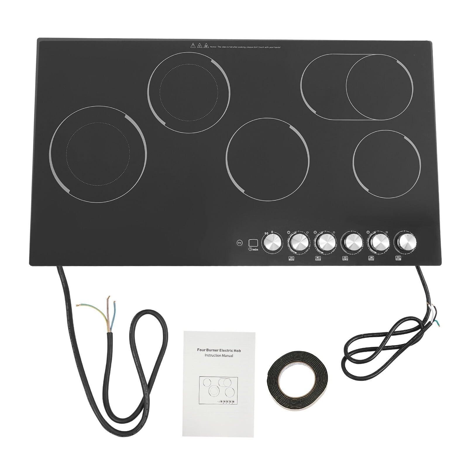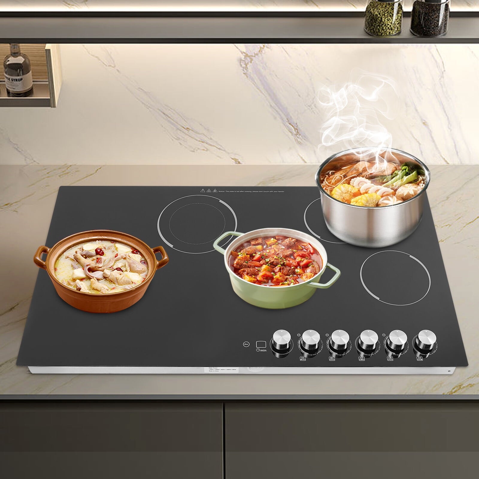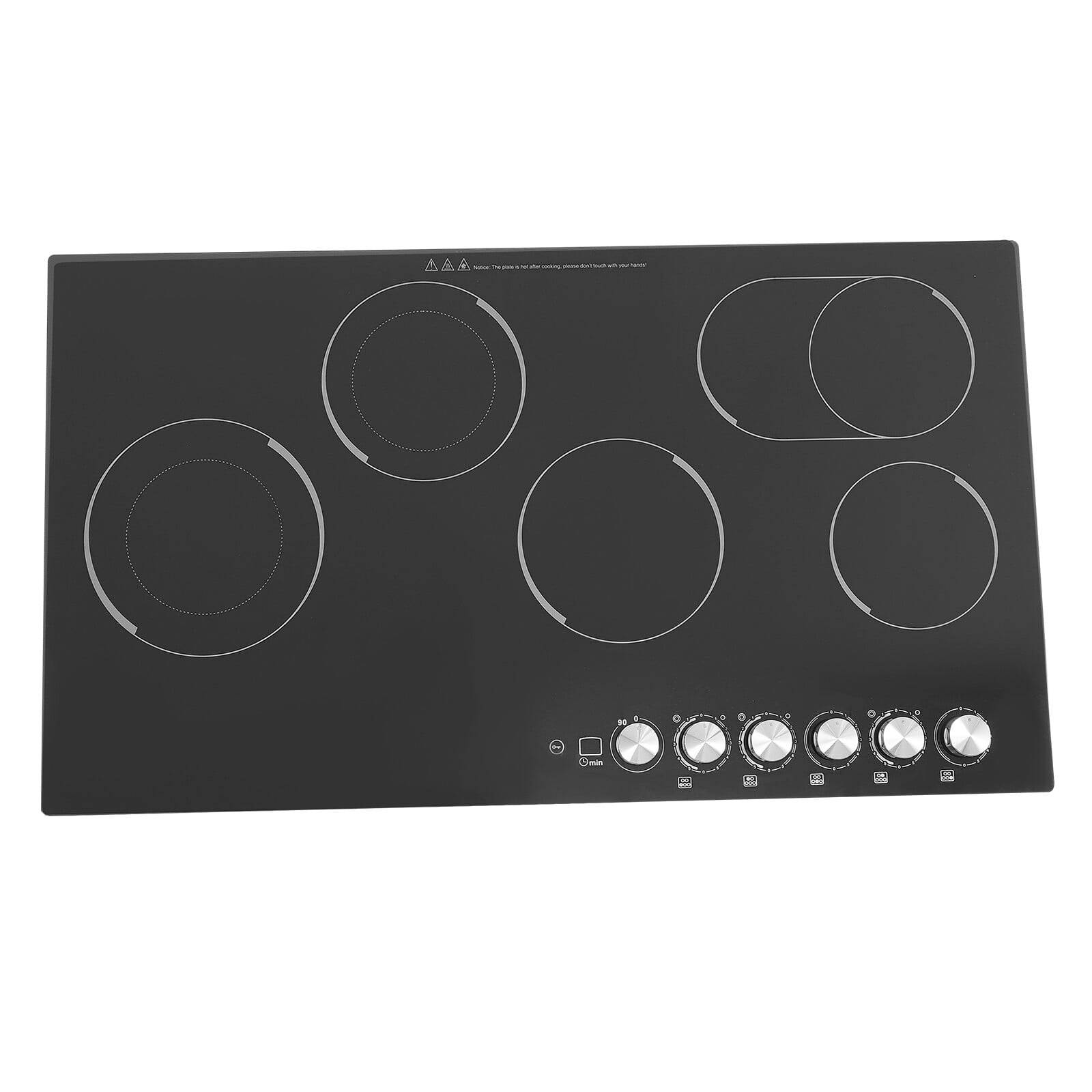 The electric ceramic cooktop is an ideal choice for your modern kitchens. It features five electric burners, offering ample space for all your cooking needs. Each heating zone can provide uniform and precise temperature control, allowing you to cook delicious ingredients. The premium materials make it durable and easy to clean, and a series of protective functions make you feel more at ease when using it. We believe it will bring you a great cooking experience and allow you to enjoy delicious dishes fully.