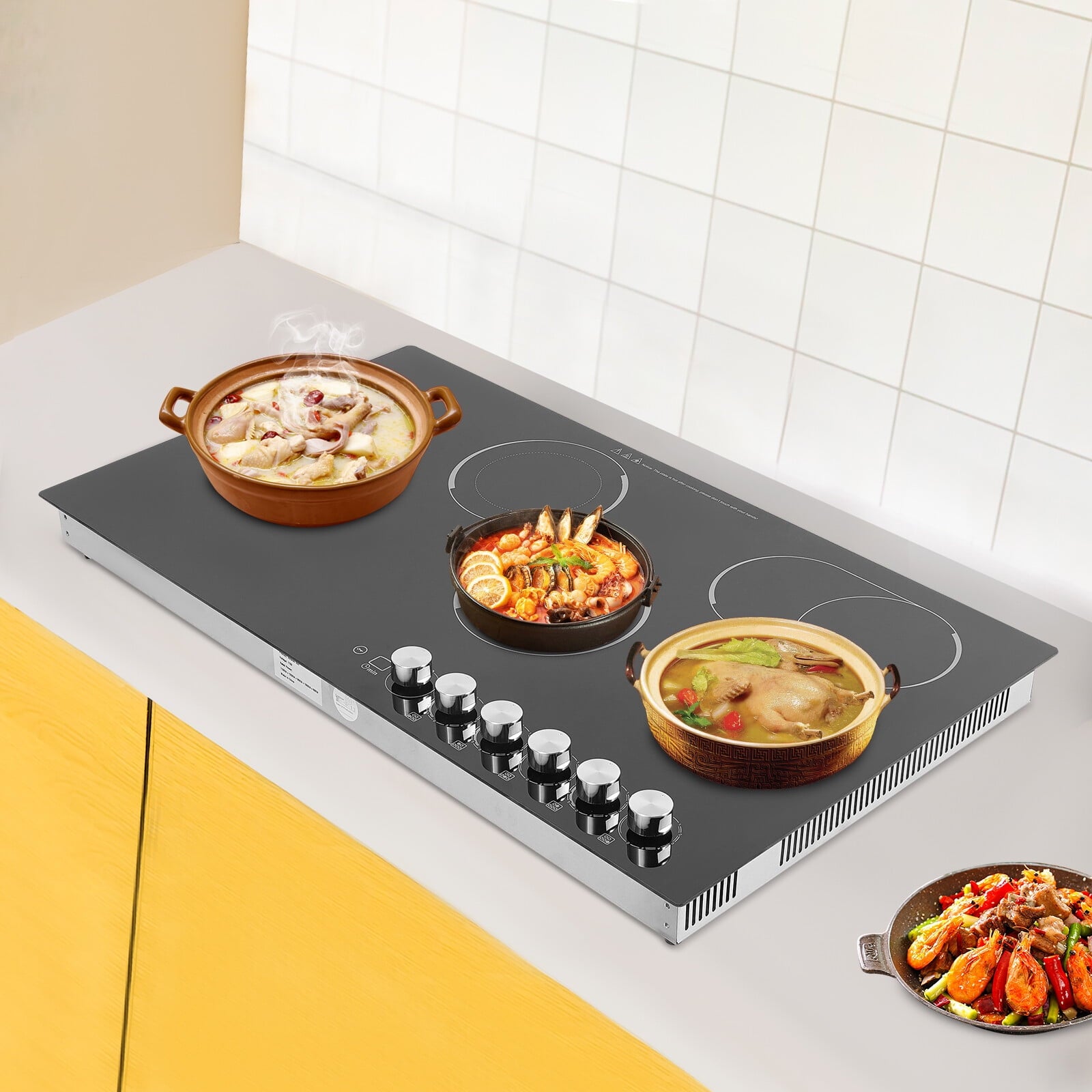 Key FeaturesBuild to Last: It is made of a premium microcrystalline panel and galvanized bottom plate, which is heat-resistant, rust-proof, impact-resistant, sturdy, and not easy to break, ensuring a long service life.Excellent Performance: It adopts advanced infrared heating technology, which can quickly heat up, shorten preheating time, and improve cooking efficiency. Five heating zones can be used simultaneously, and each heating zone can provide uniform and precise temperature control to ensure even food heating and avoid local overheating or undercooking.