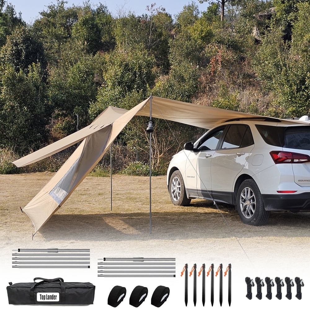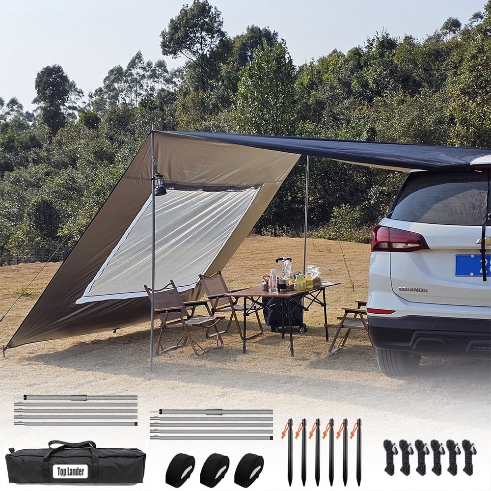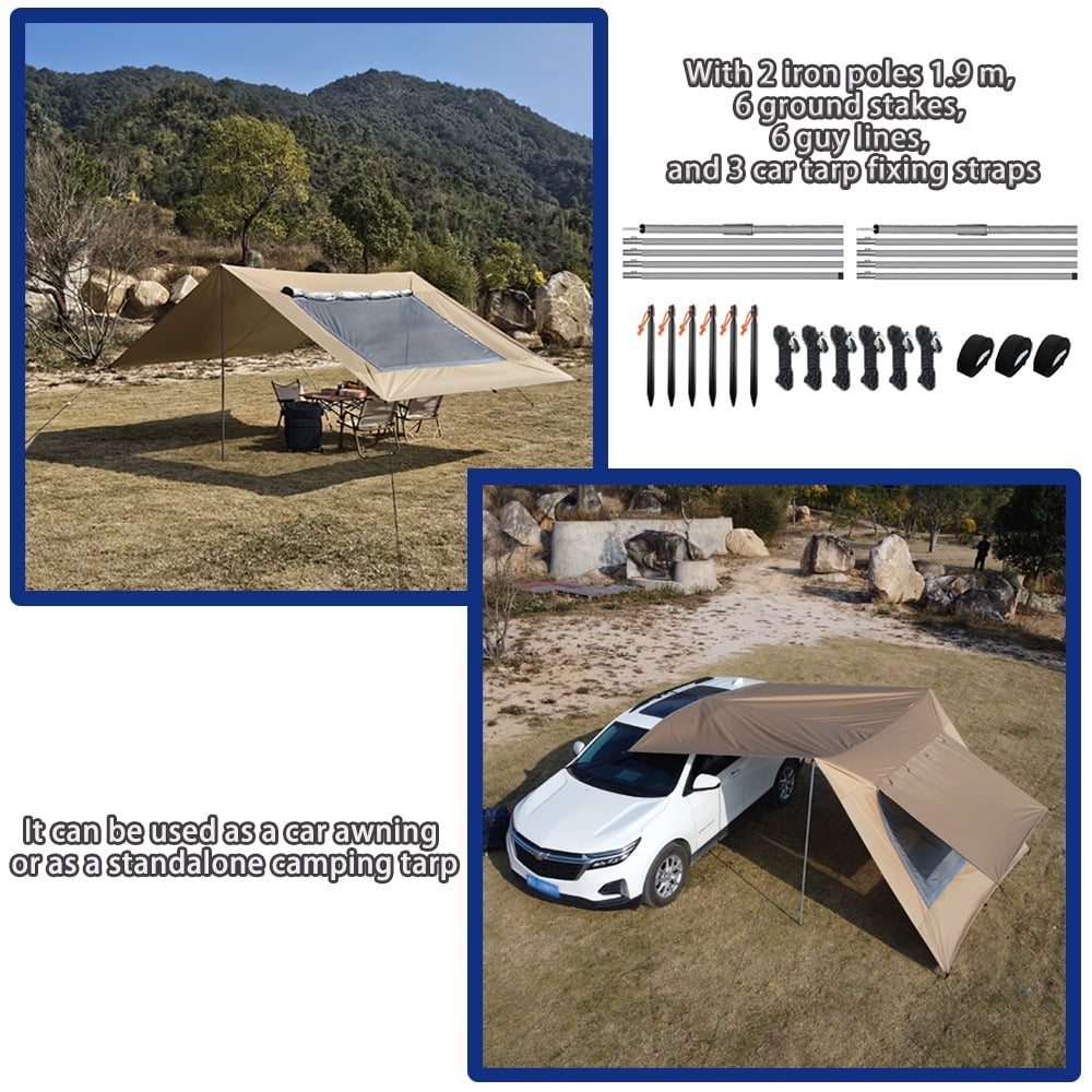 - Versatile Outdoor Shade Solution: The Car Side Awning is a spacious 118x196in canopy that provides ample coverage and shelter for a variety of outdoor activities. Whether you’re camping, hiking, picnicking, or simply looking to escape the sun while tailgating, this multi-functional awning has you covered.