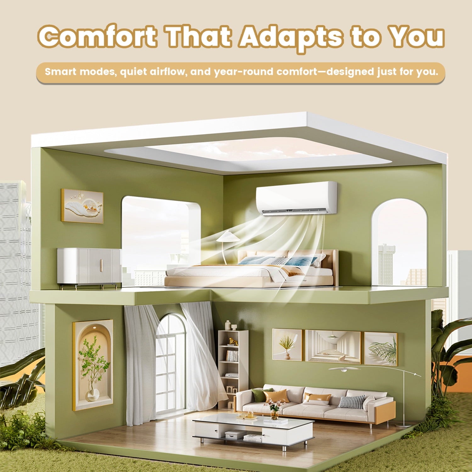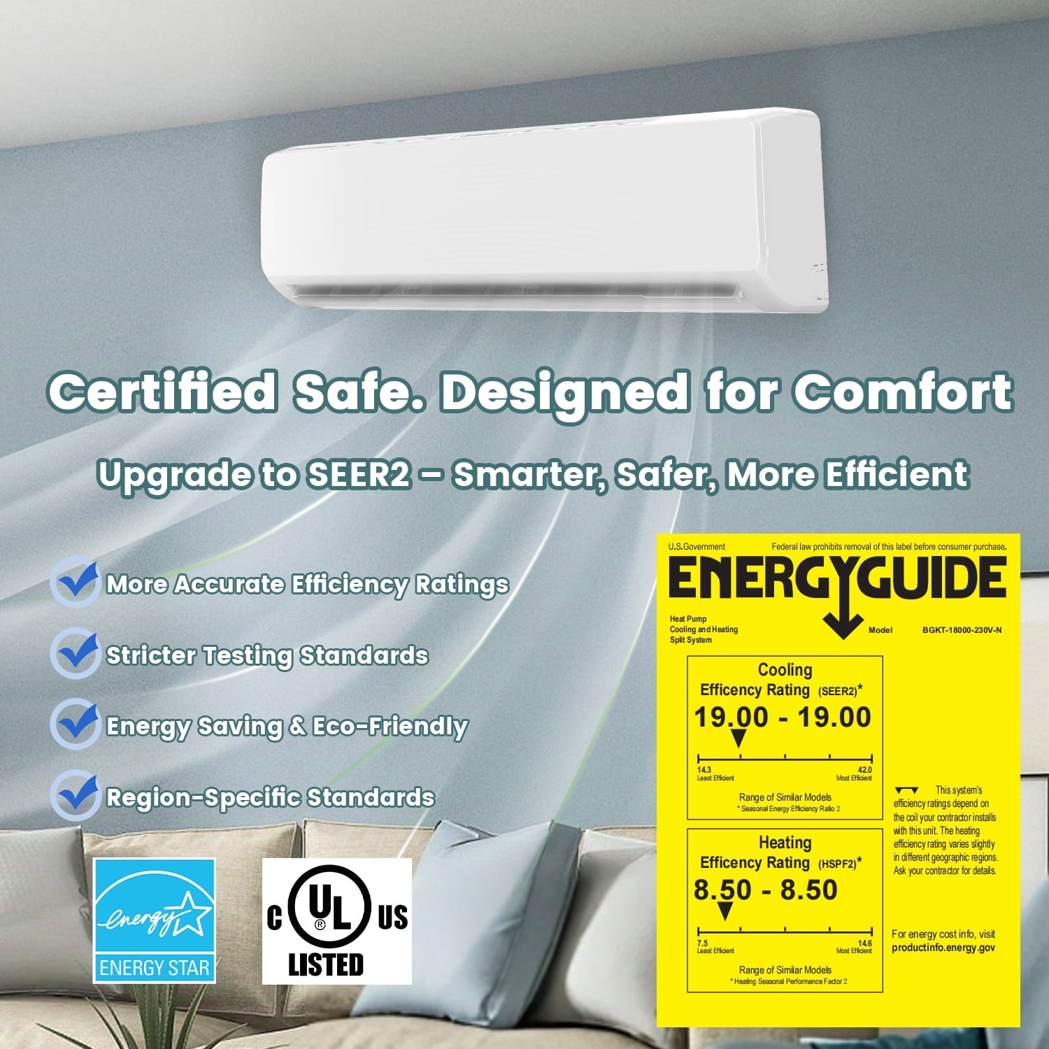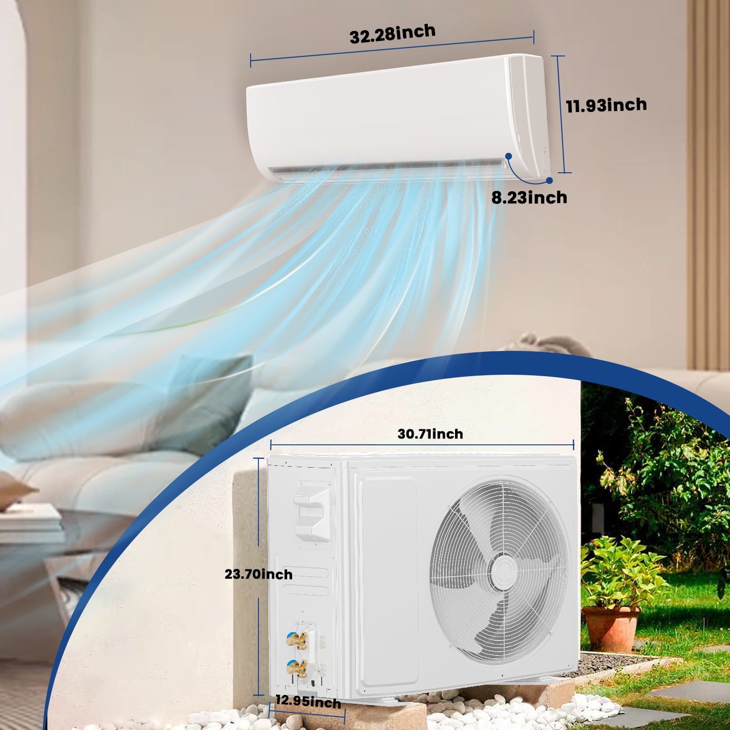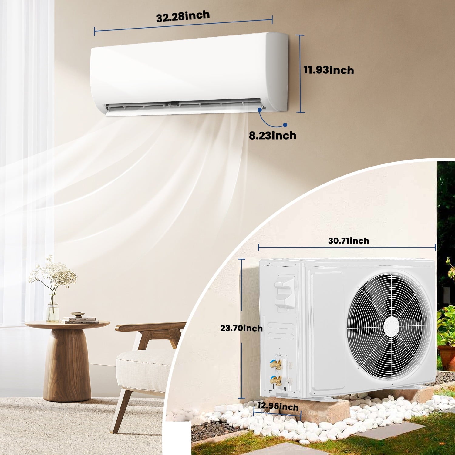 - Energy Efficient & Eco-Friendly: AHRI-certified system with advanced R32 refrigerant offers eco-conscious heating and cooling. The high-efficiency compressor reduces cycling, extending unit lifespan while maintaining stable comfort.
