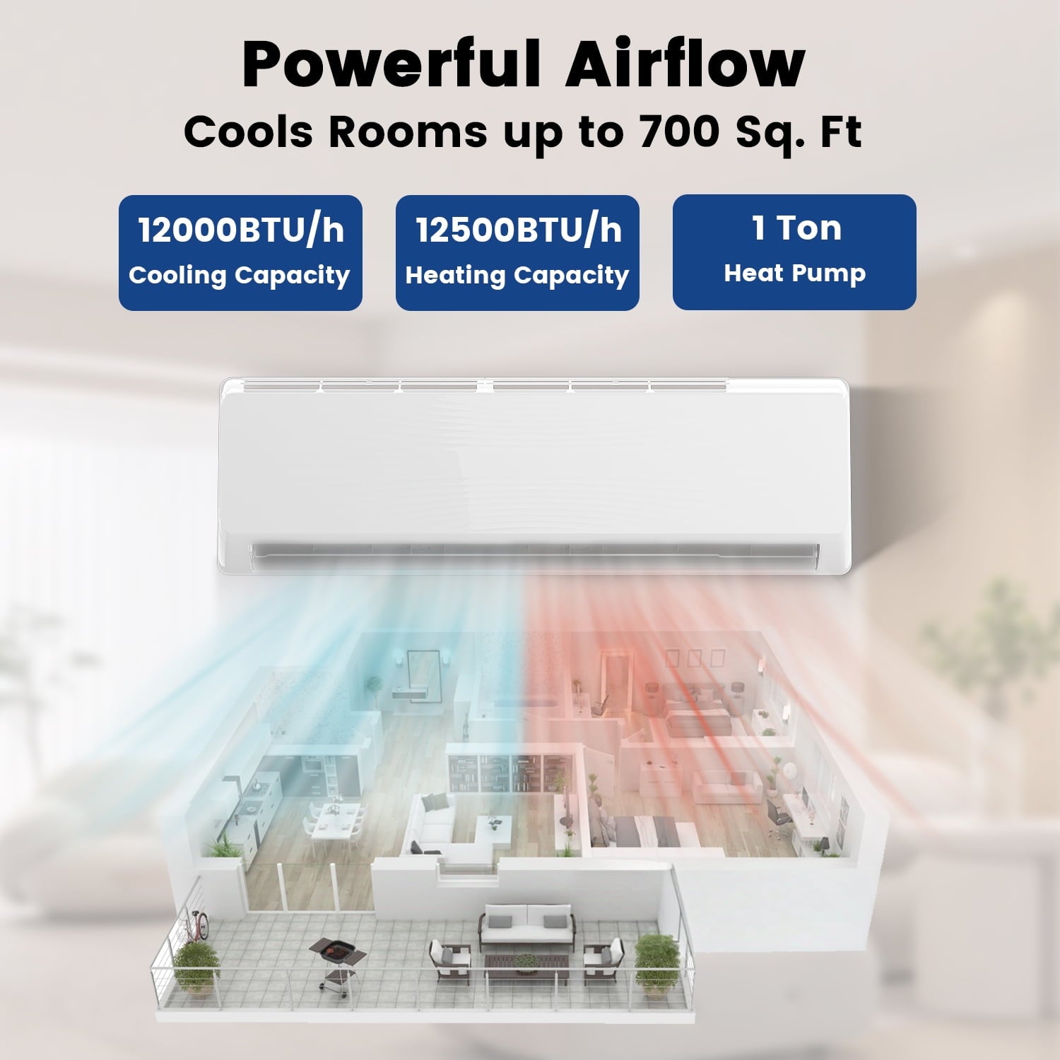 - 4 Modes for All-Season Comfort: Choose from Cool, Heat, Dry, and Fan modes to match the season. Customize airflow with 4 fan speeds (Low/Medium/High/Auto). Features Sleep Mode (as low as 26dB), ECO Mode (saves up to 30% energy), and Turbo Mode for fast temperature changes.Remote Control & Quiet Operation: Easily adjust settings from anywhere in the room with the user-friendly remote. Set a 24-hour timer to save energy. The display turns off after 10 seconds of inactivity for undisturbed sleep, and quiet operation ensures peace and quiet.Low-Maintenance with Smart Features: Self-cleaning function removes odors and mold, while the washable dust filter keeps air fresh. Auto defrost activates in freezing conditions (as low as -4°F) to ensure reliable heating in winter.Fast Cooling for Larger Spaces: Delivers powerful 12,000 BTU cooling, perfect for rooms up to 800 sq. ft. Ideal for bedrooms, living rooms, apartments, or offices. Inverter technology ensures consistent and fast cooling performance.Energy Efficient & Eco-Friendly: AHRI-certified system with advanced R32 refrigerant offers eco-conscious heating and cooling. The high-efficiency compressor reduces cycling, extending unit lifespan while maintaining stable comfort.Special Features:Eco-Mode, Sleep Mode, Fan Mode, Auto-Swing, Dry Mode,Inverter Compressor,Silent Mode, Heating & Cooling Function,Fast Cooling