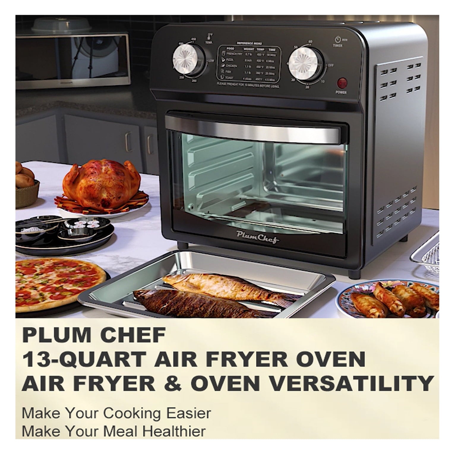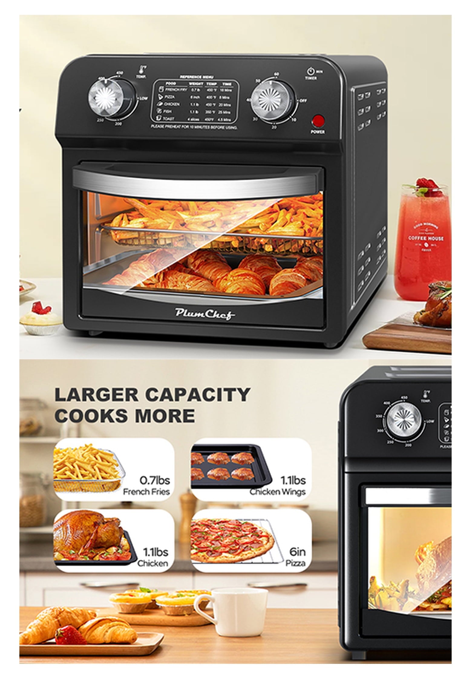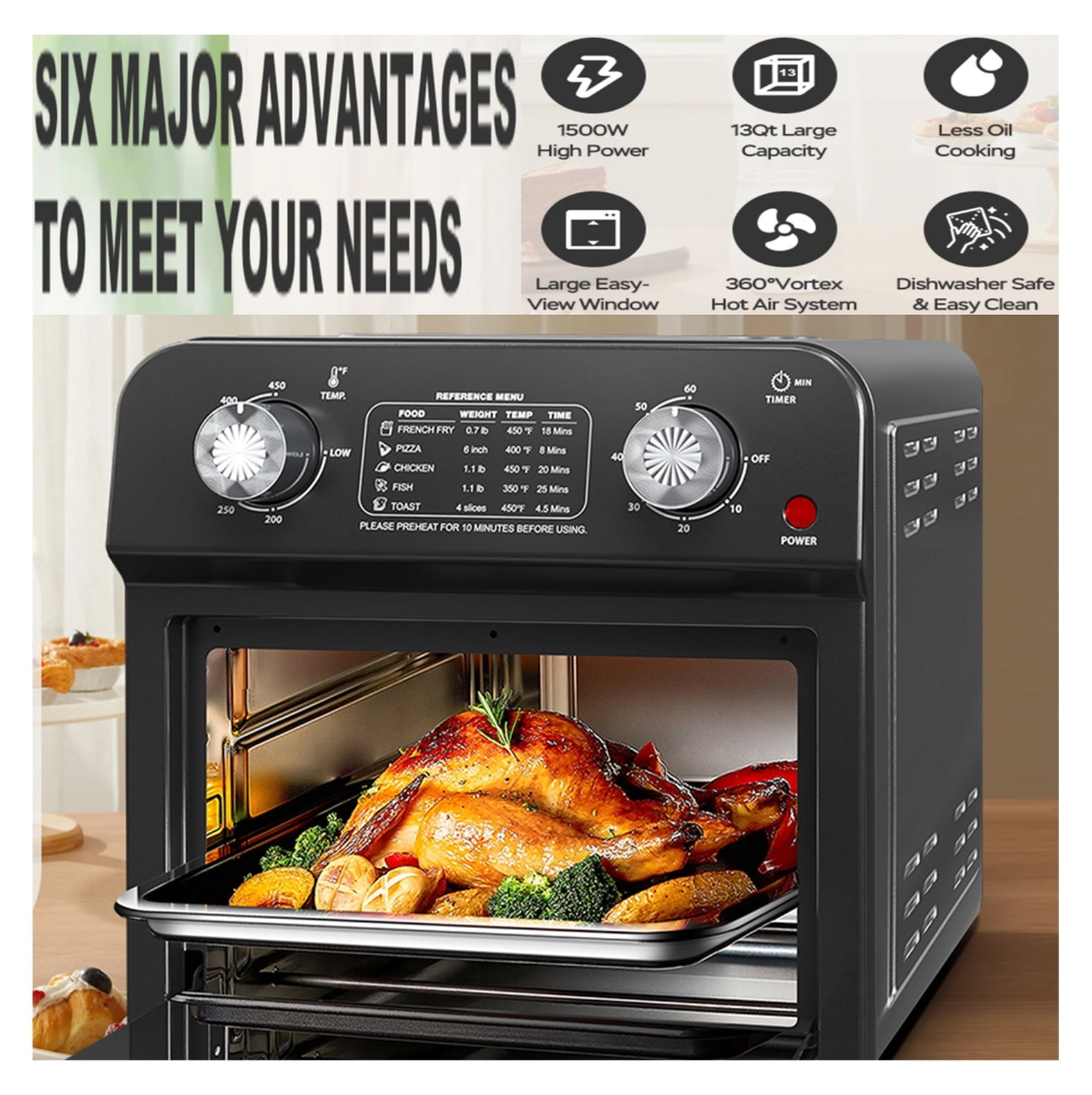 - Powerful and Stylish Design: Featuring a 1500W power output, this toaster oven provides efficient cooking with a sleek, modern stainless steel design. Built to last, it ensures reliable performance for years, handling daily tasks with ease.