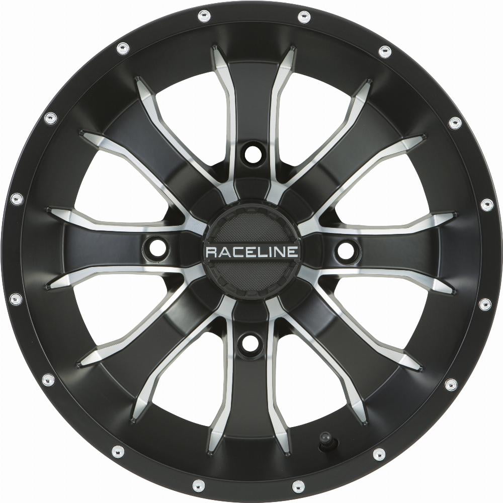 This RaceLine Wheels A77 Mamba 12 inch diameter x 7 inch width 8 spoke Wheel is made of 1 piece cast aluminum and comes in black. It has load capacity of 700 pounds. It has a 60 degree conical seat lug type and is sold individually.Black Finish With Machined Accents; 1 Piece Cast Aluminum Construction; Compatible With TPMS (Tire Pressure Monitoring System); With Raceline Logo Center Cap