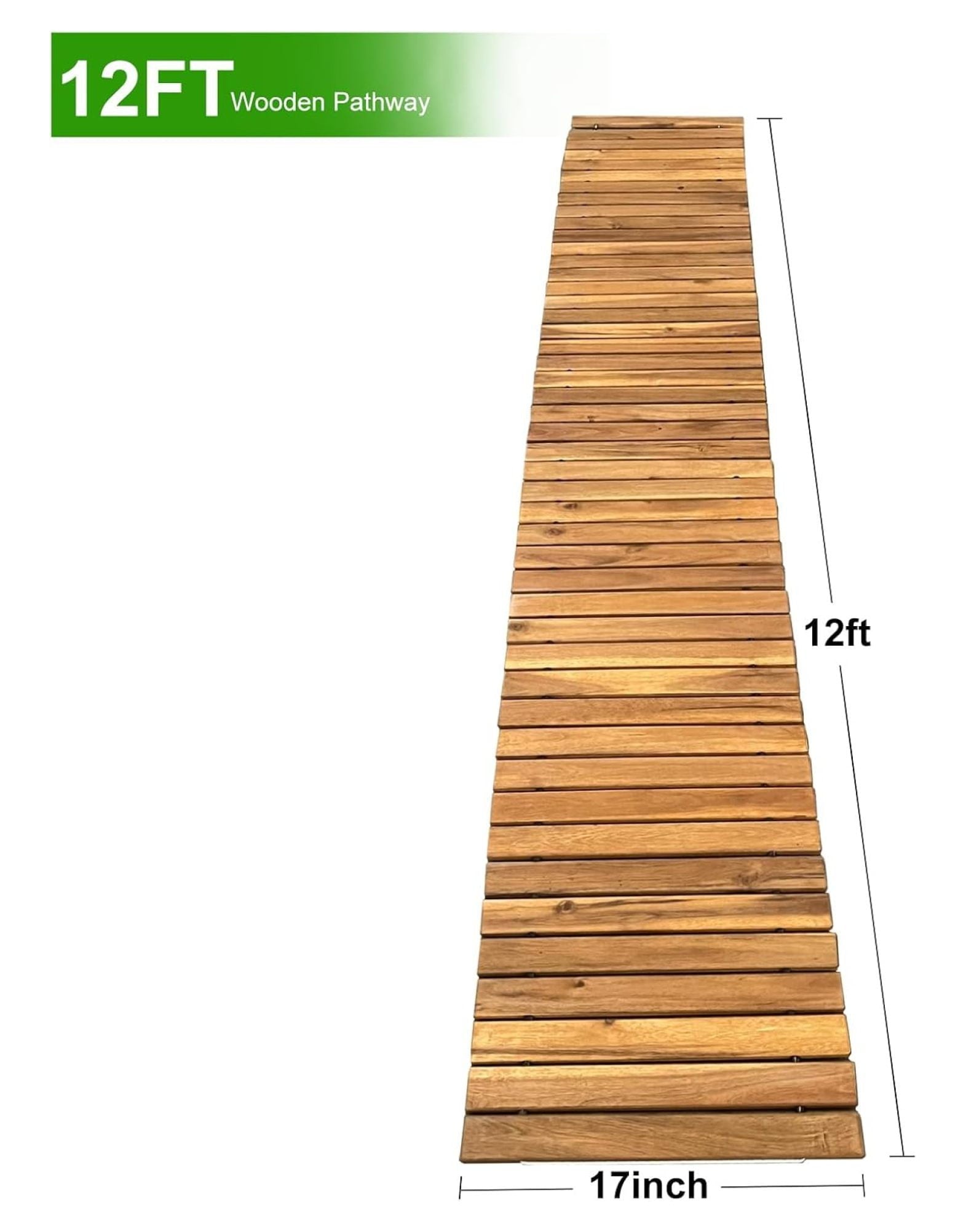 - 【Easy Installation】: Simply roll out the 12-foot wooden pathway for instant setup; no tools or complicated assembly required, saving you valuable time and effort; perfect for quick garden transformations