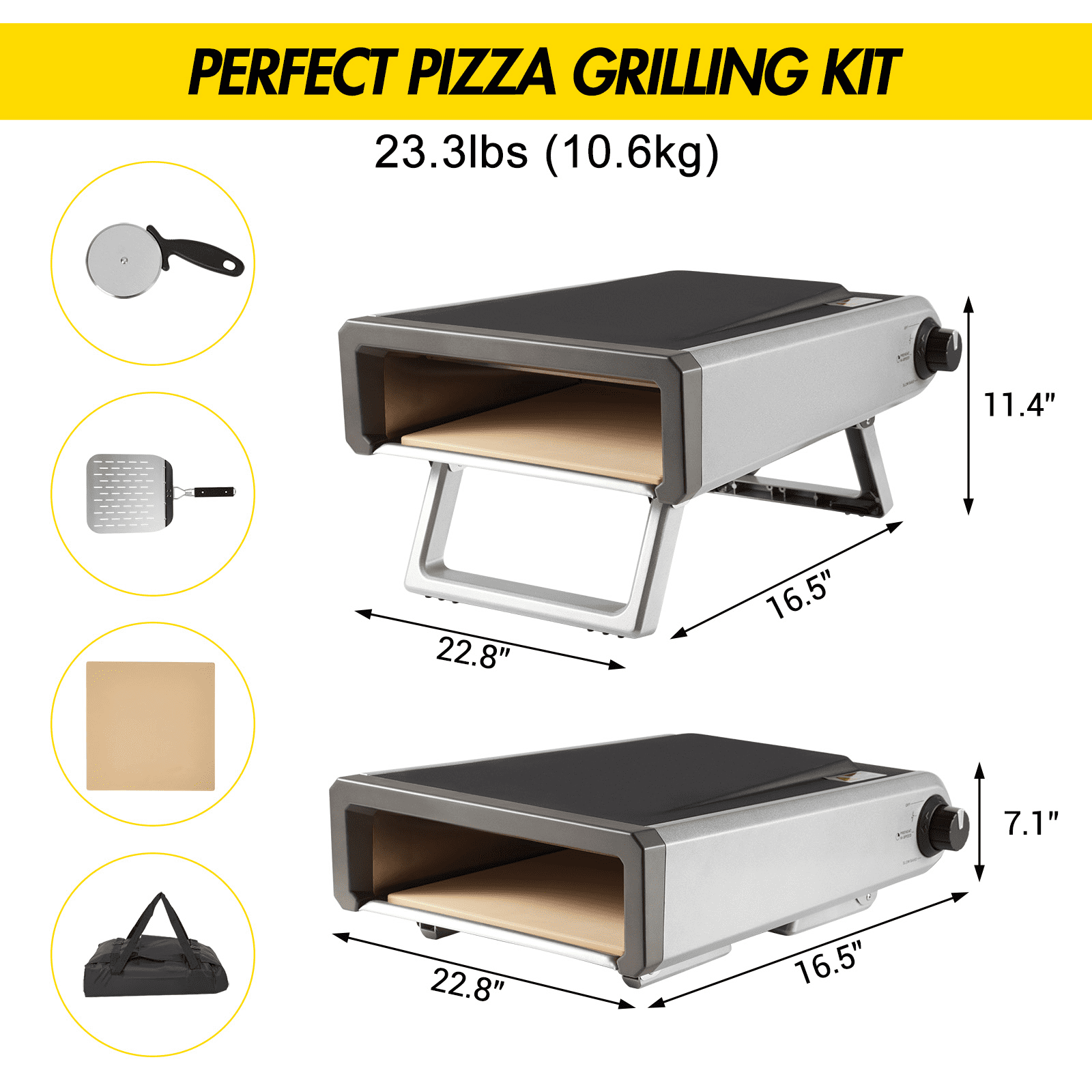 Complete Ready-to-Use Package:Includes necessary components for immediate operation.The cooking surface accommodates standard 12-inch pizzas while maintaining efficient heat distribution for consistent results across the entire stone surface.