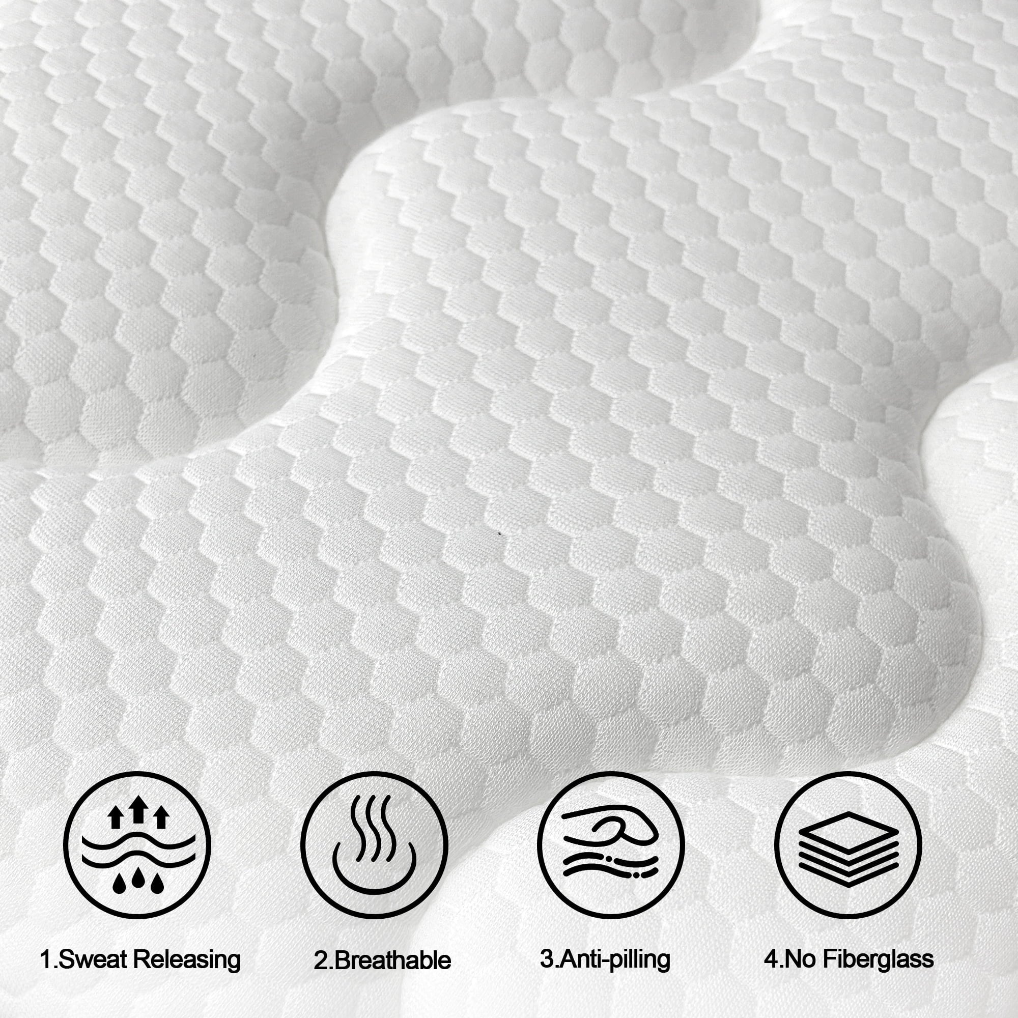 - 【透气舒适面料】我们的12英寸特大号床垫采用高端亲肤针织面料,比传统床垫升温速度快30%。不含有害物质和玻璃纤维的面料可防止盗汗和皮肤过敏,让您整晚保持凉爽、干燥、无刺激,让您在床垫上安全健康地休息。