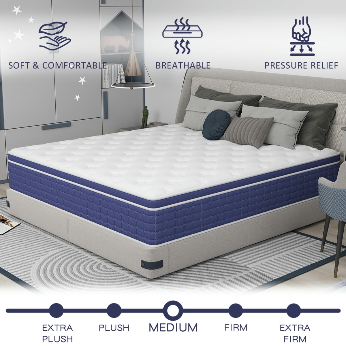 • Hybrid material perks: Cooling gel memory foam hugs body, wicks heat; pocket springs respond sensitively, no partner disturbance.