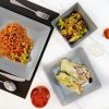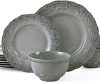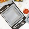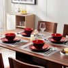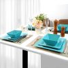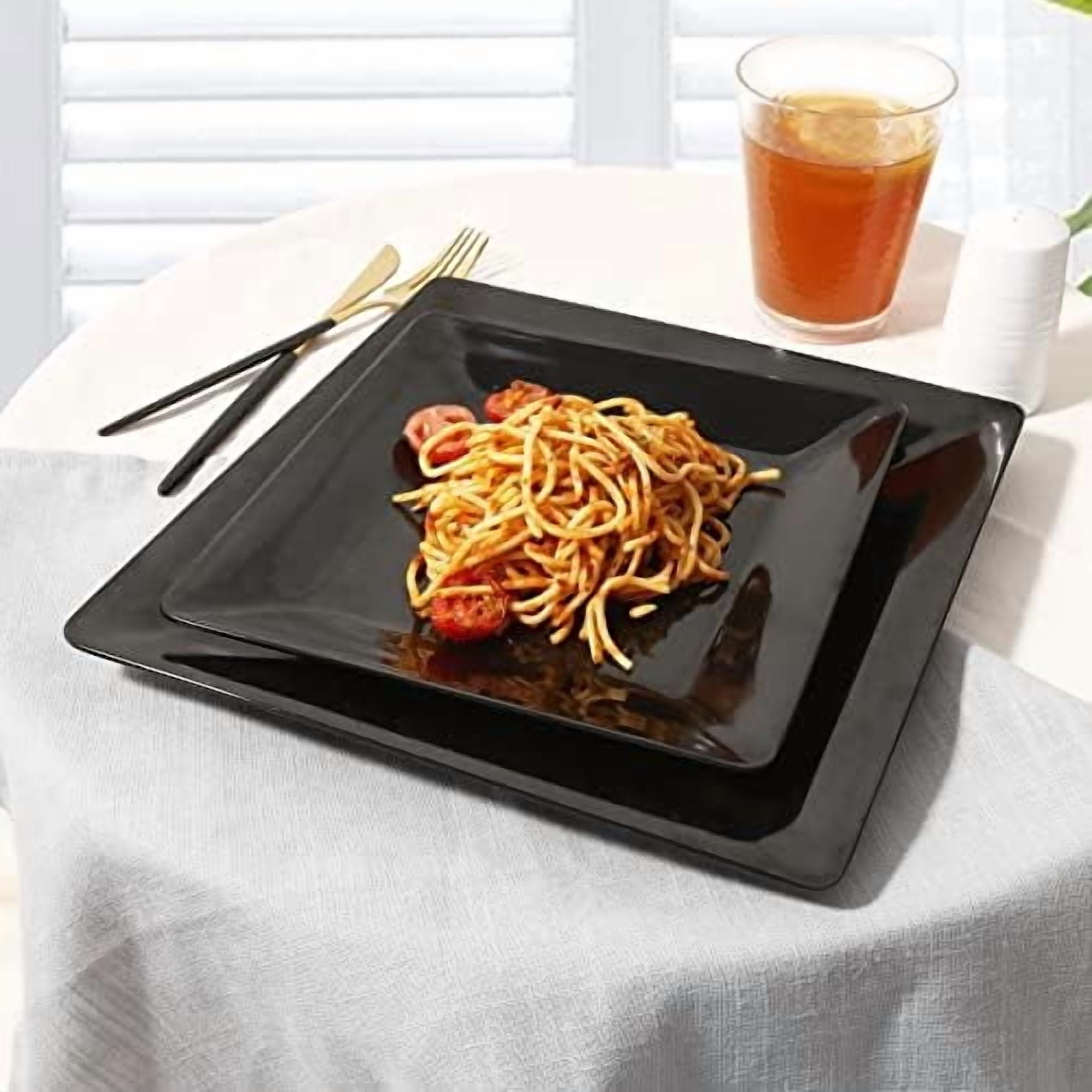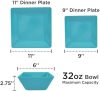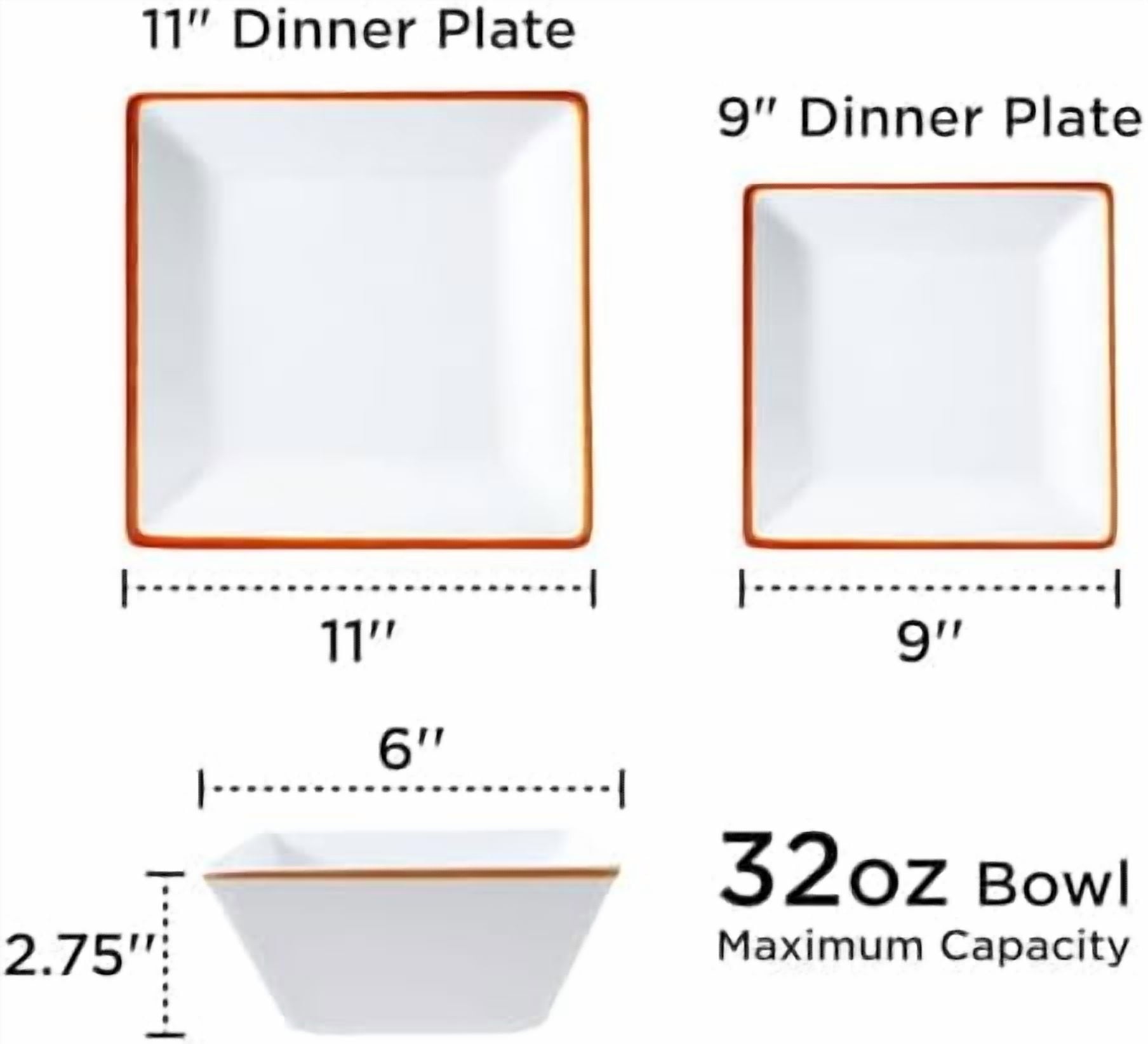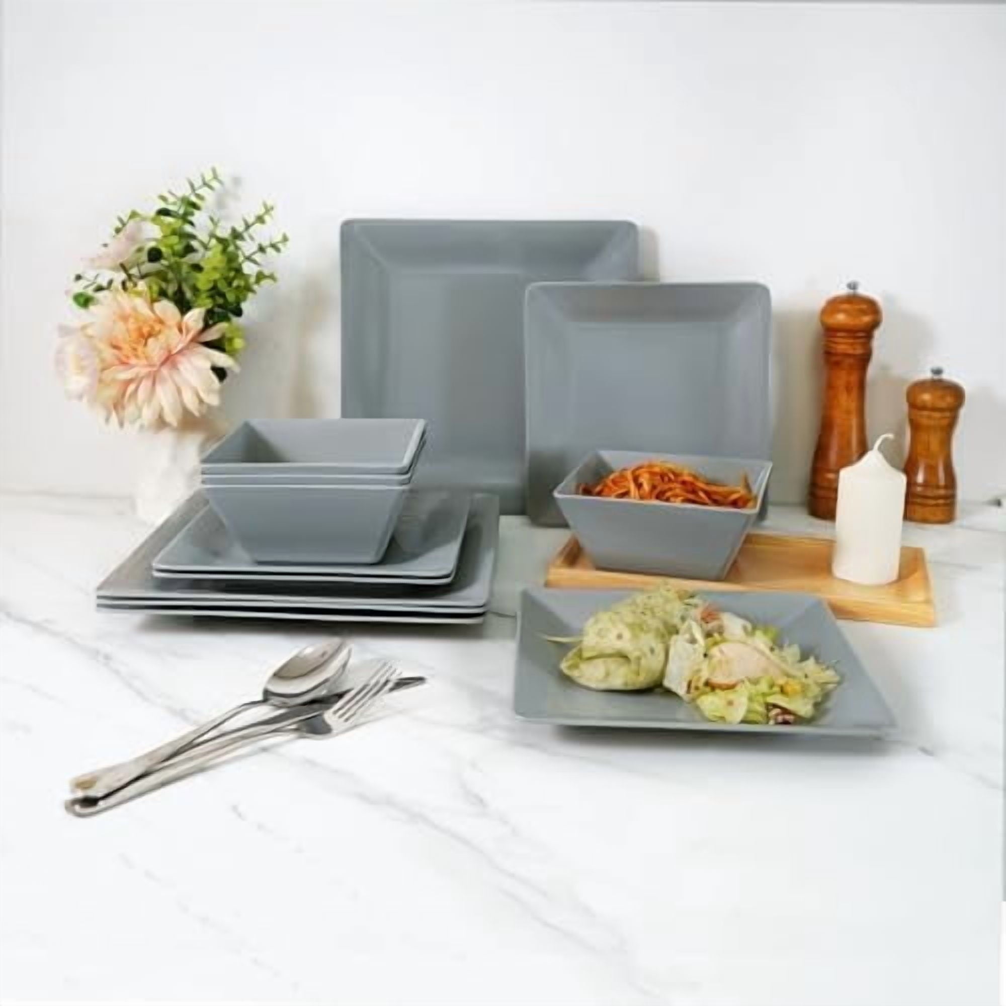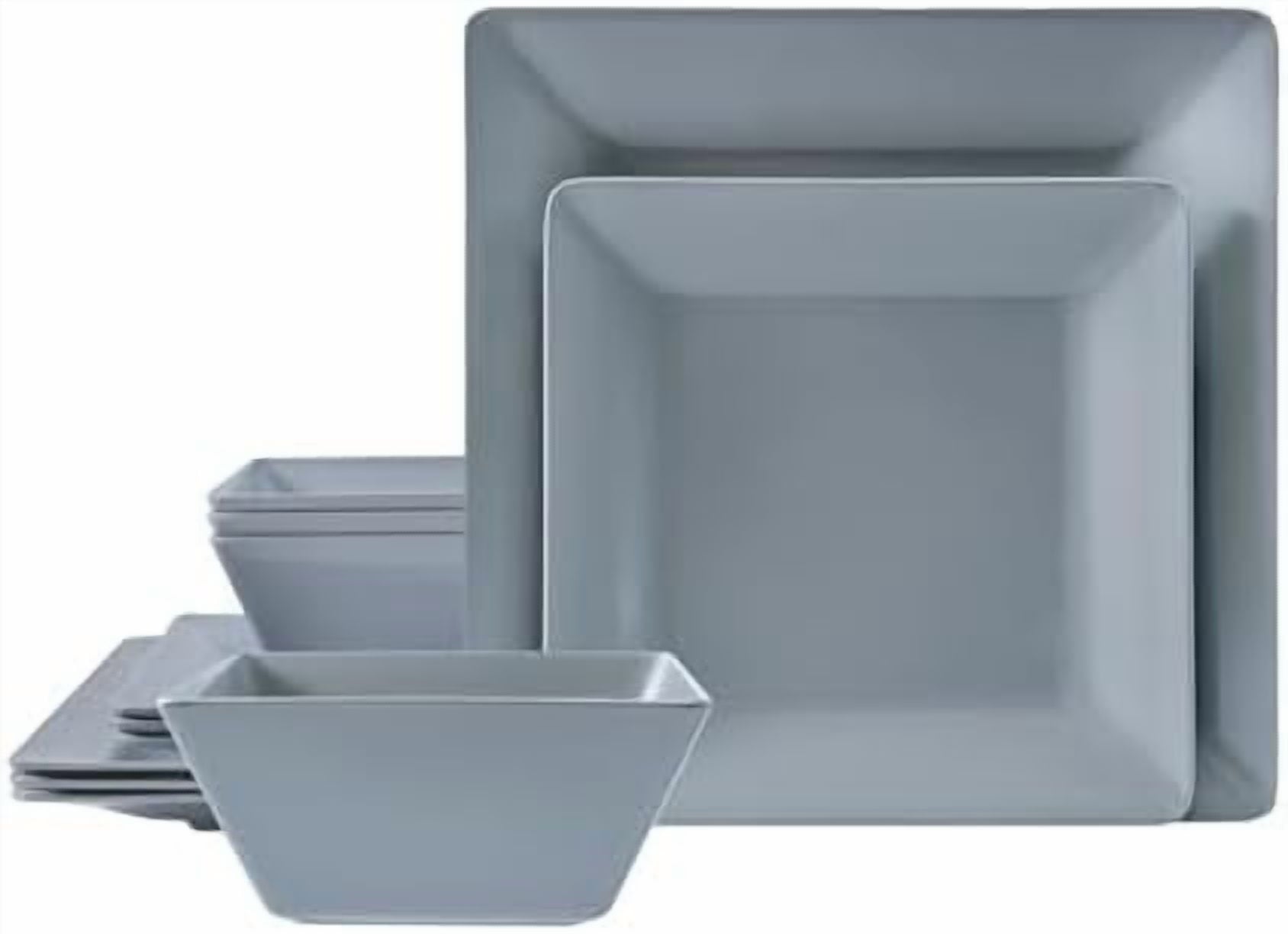 - Dinnerware Set for 4: Includes 4 each of 32 oz bowls, 11″ dinner plates, and 9″ salad plates — crafted in a sleek square shape with a dark gray finish and brilliant glow, ideal for both everyday meals and formal gatherings.