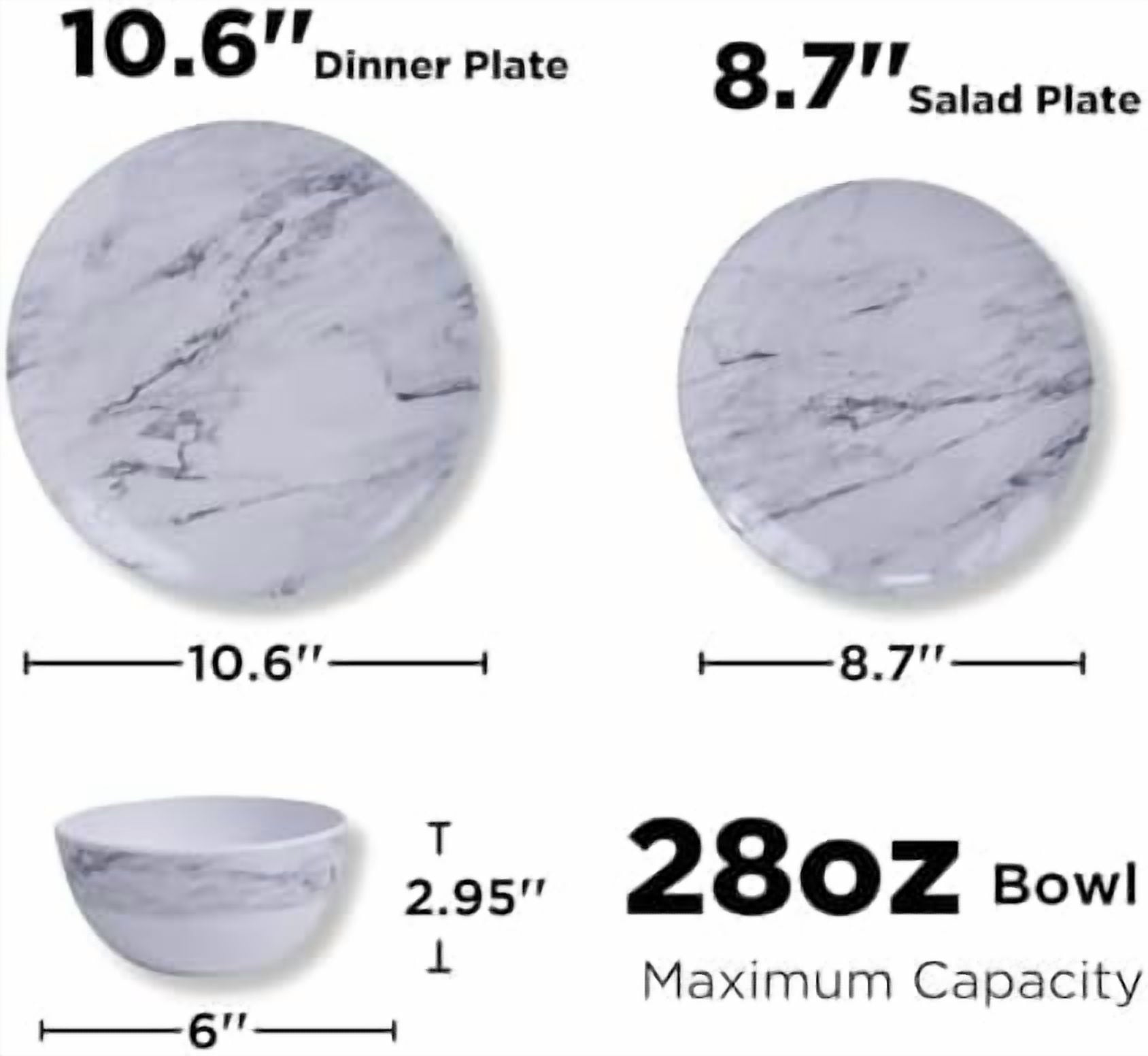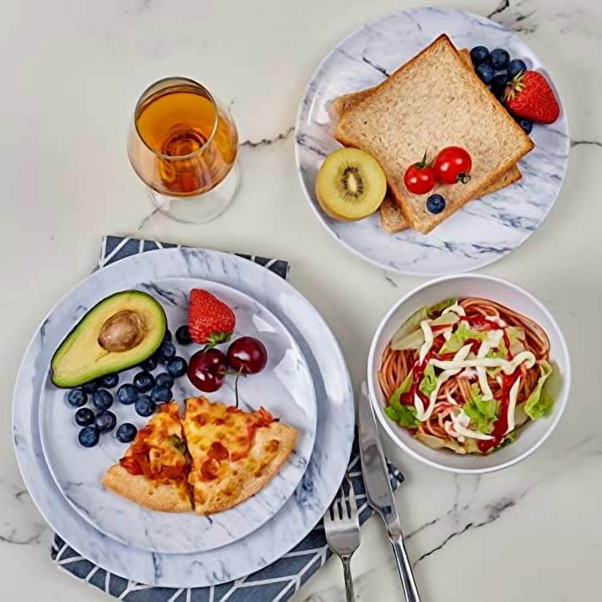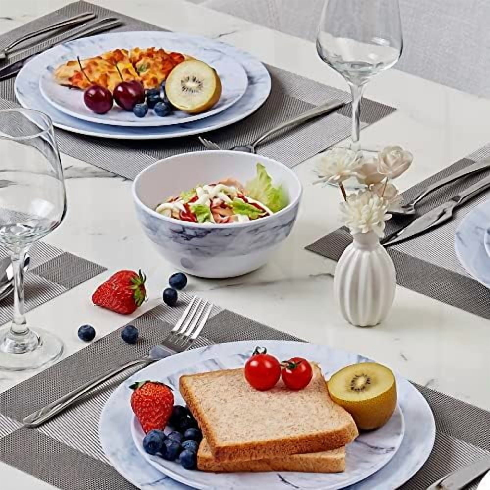 Unbreakable Melamine Dinnerware: Crafted from BPA-free, food-safe melamine, this dinner set combines the elegance of ceramic with enhanced durability — chip-resistant and shatterproof, also more substantial than typical melamine sets.