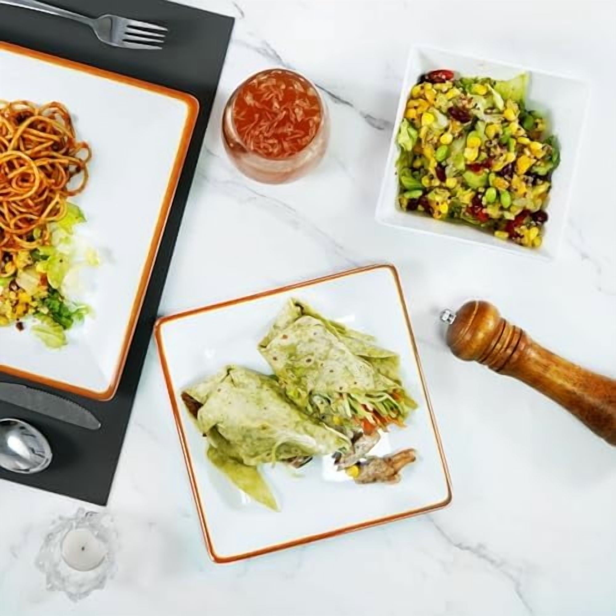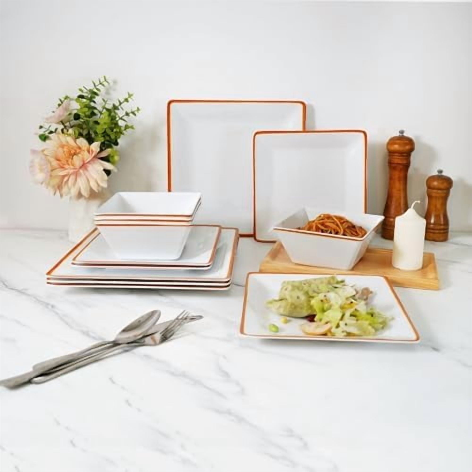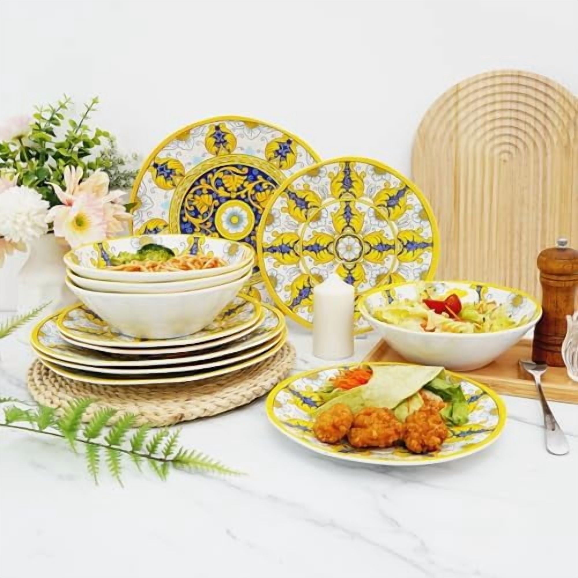 Unbreakable Melamine Dinnerware: Crafted from BPA-free, food-safe melamine, this dinner set combines the elegance of ceramic with enhanced durability — chip-resistant and shatterproof, also more substantial than typical melamine sets.