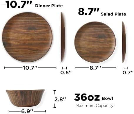 - Ideal for Every Occasion: From family dinners to picnics, barbecues, RV trips, and patio parties, this melamine dinnerware adapts to any setting, safe for indoor and outdoor use without the fragility of ceramic or the flimsiness of plastic.