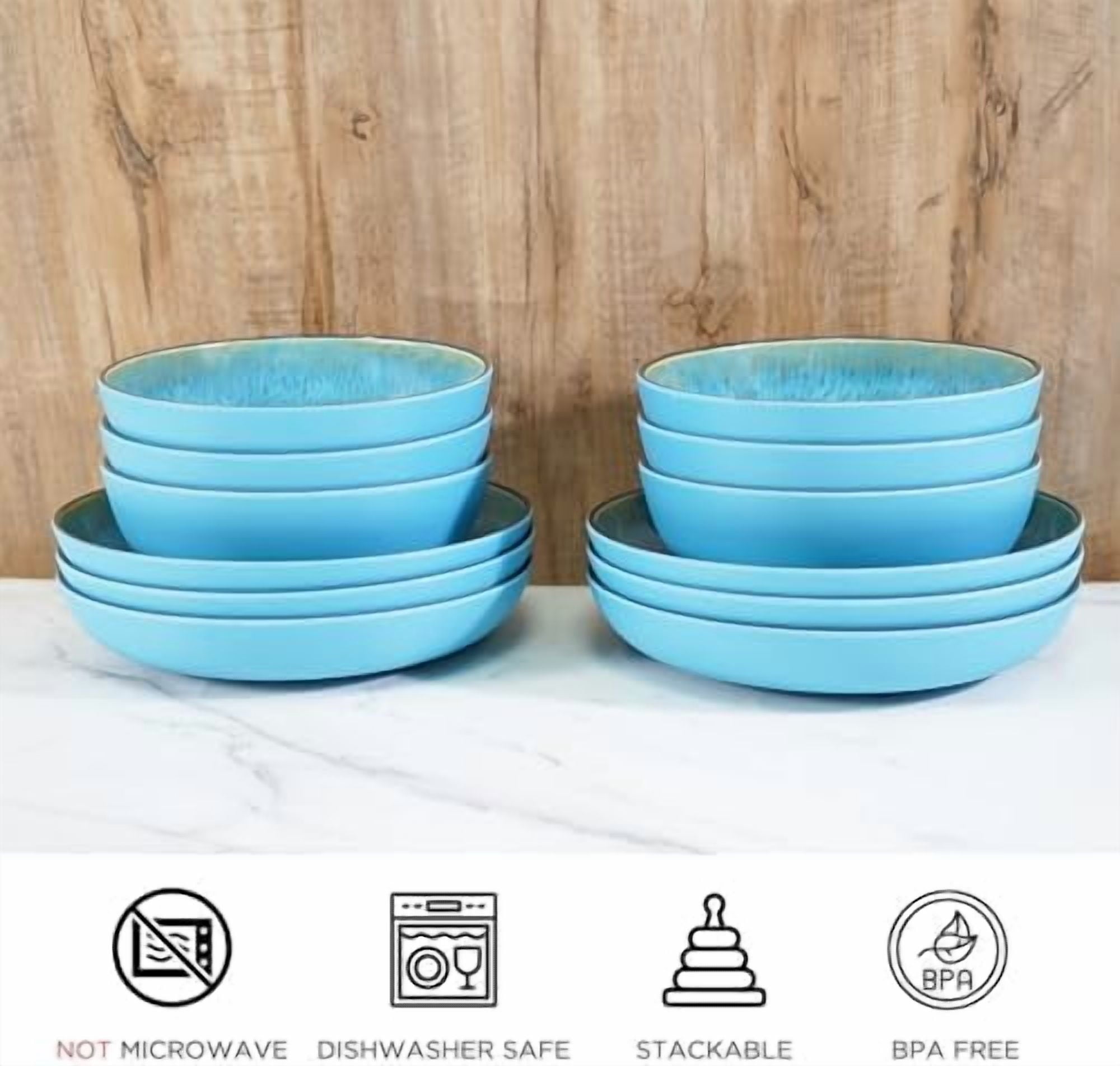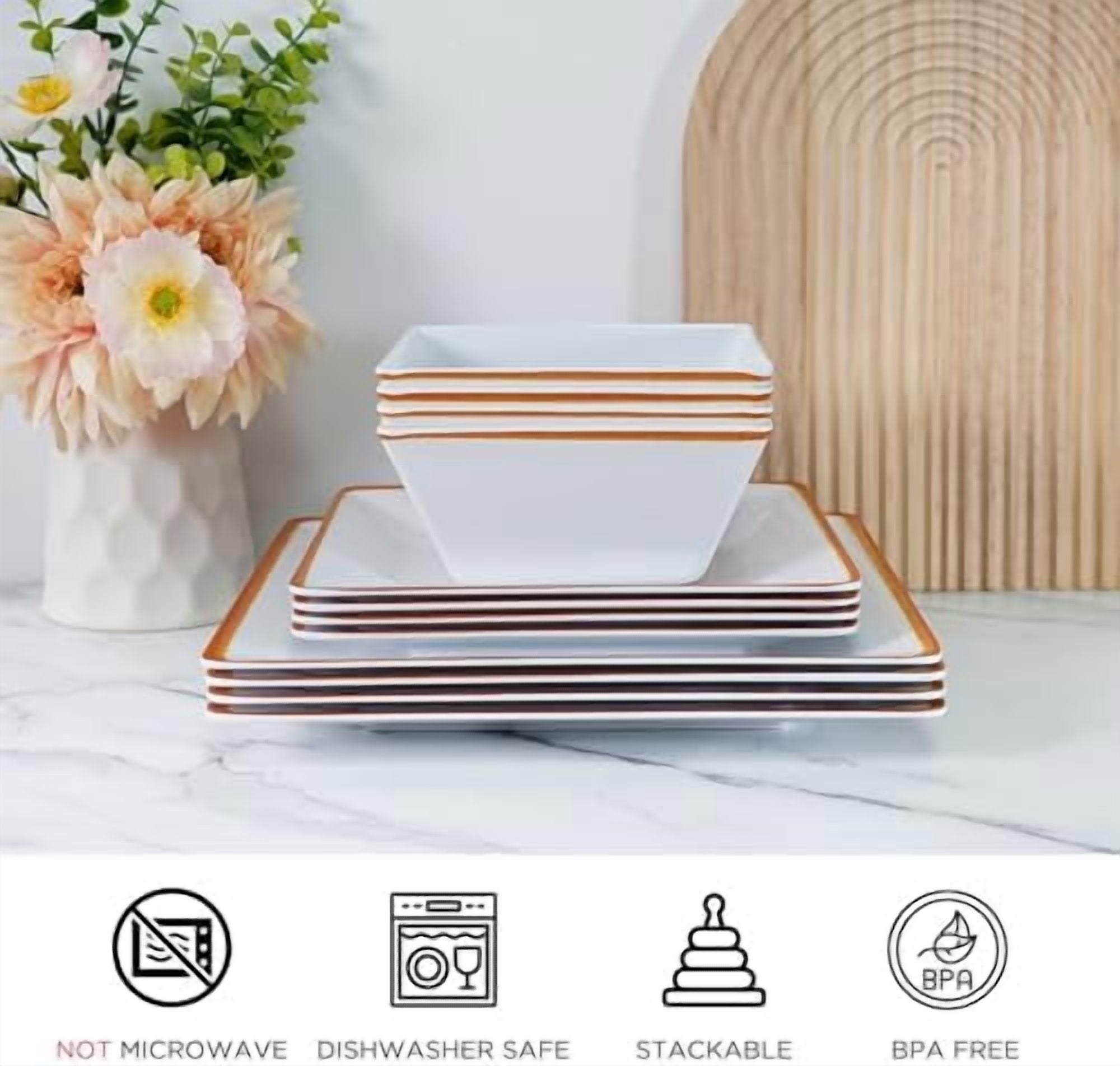 Ideal for Every Occasion: From family dinners to picnics, barbecues, RV trips, and patio parties, this melamine dinnerware adapts to any setting, safe for indoor and outdoor use without the fragility of ceramic or the flimsiness of plastic.