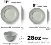 - Unbreakable Melamine Dinnerware: Crafted from BPA-free, food-safe melamine, this dinner set combines the elegance of ceramic with enhanced durability — chip-resistant and shatterproof, also more substantial than typical melamine sets.