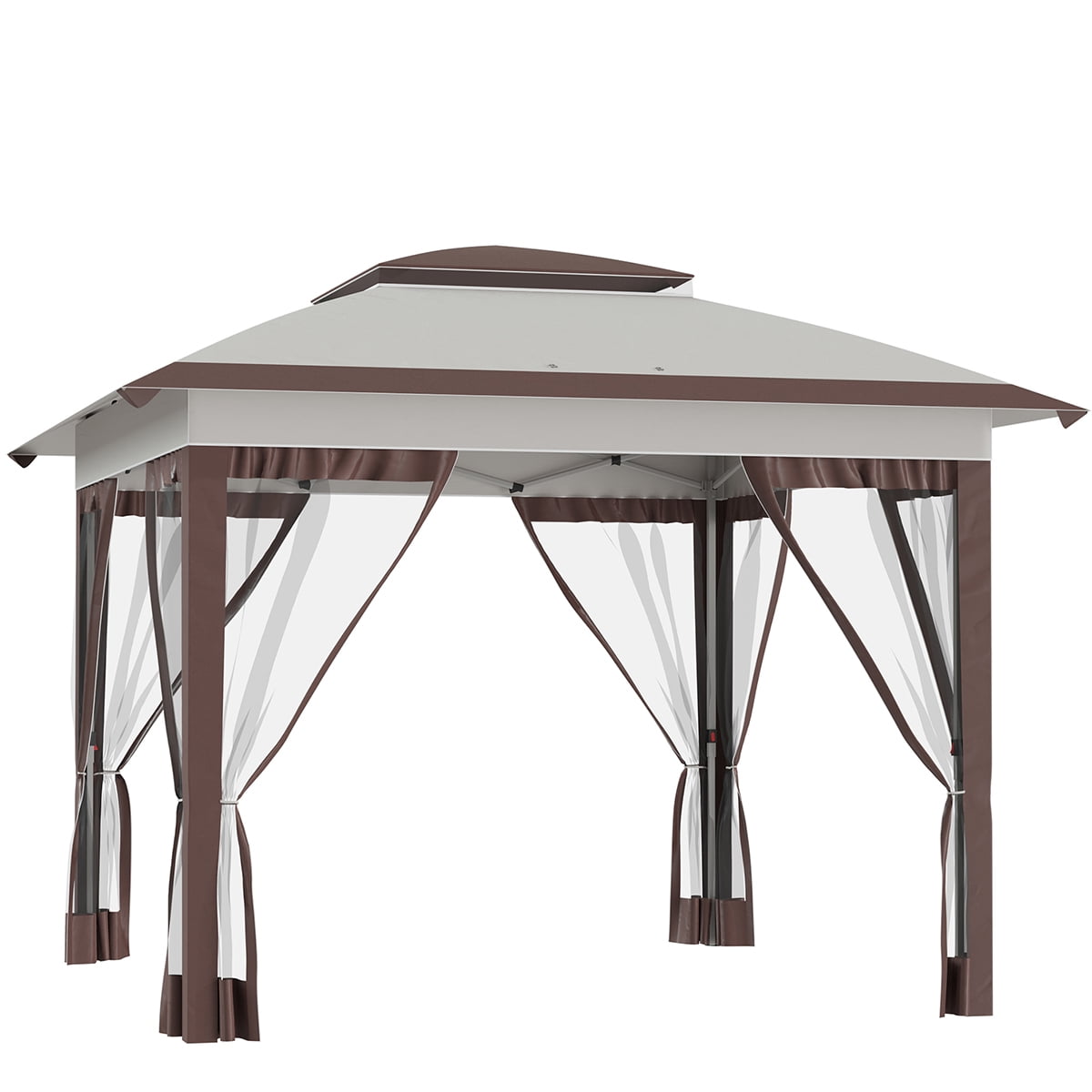 12′ X 12′ Pop Up Canopy Tent with Netting and Carry Bag,Double Canopy, Instant Sun Shelter with 137 Sq.ft Shade, Tents for Parties, Height Adjustable, for Outdoor, Garden, Patio, Beige and Brown