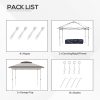 - Large Shade Patio Gazebo: 12’x12′ at the top, 9.7′ maximum interior height and 6.6′ maximum clearance under the valance. Provides 137 square feet of coverage, roomy enough to accommodate 13 people and chairs.