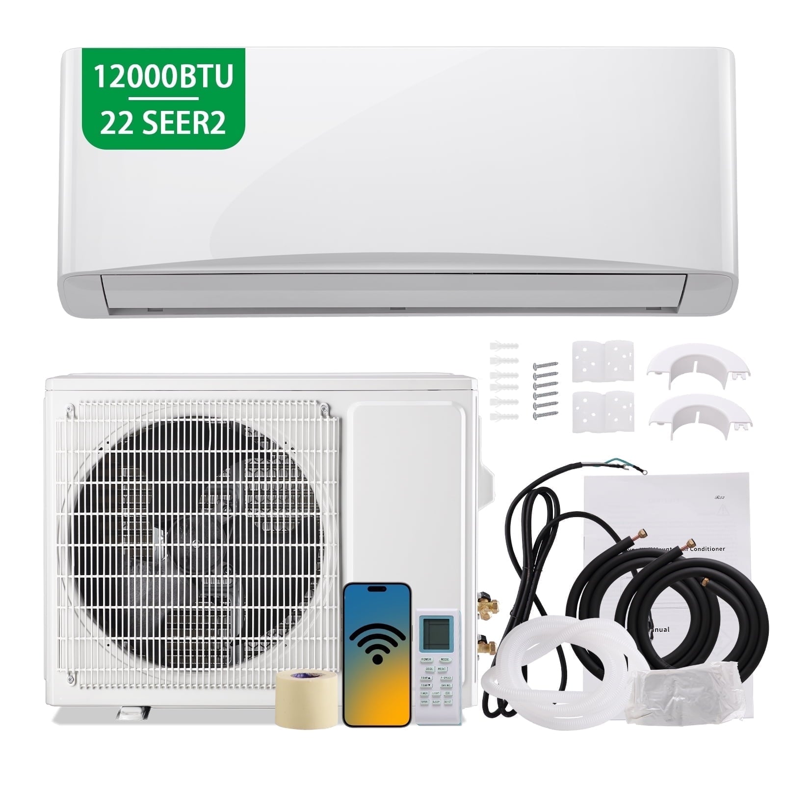 12000 BTU Mini Split Air Conditioner& Heater, 17 SEER2 Energy Saving 230V AC Units Cools Rooms up to 750 Sq.Ft Remote Control Included