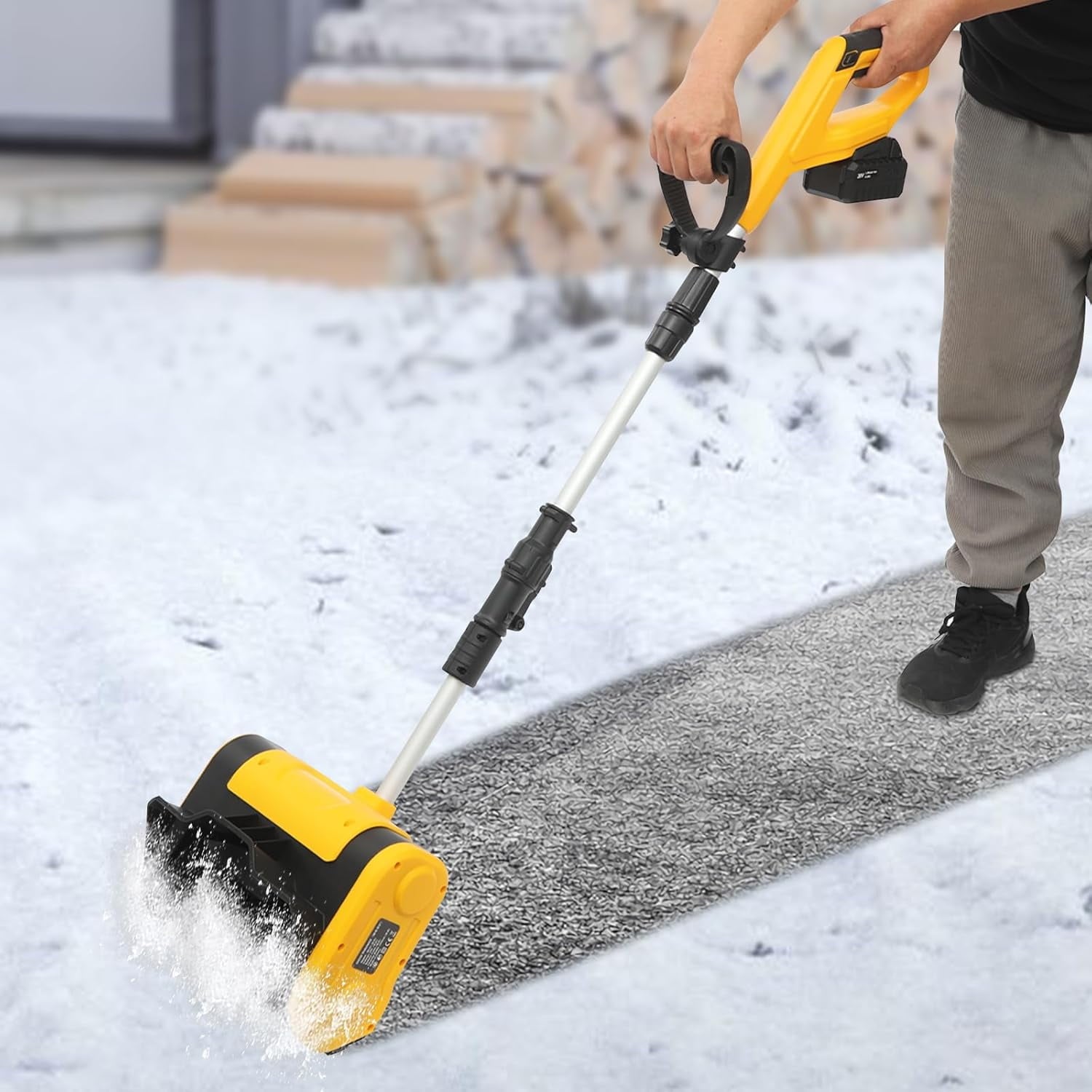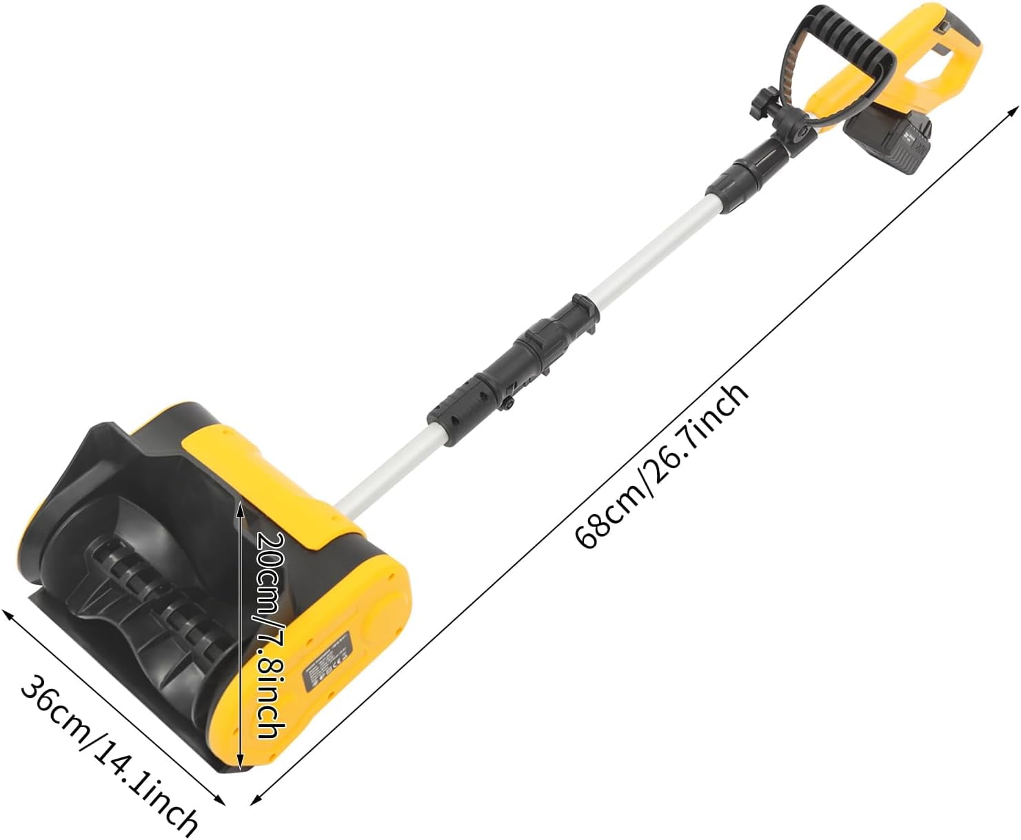 THOUGHTFUL DESIGN – The long product length (26.77in) reduces your discomfort and fatigue without bending all the time. With a simple push-button start, it offers hassle-free operation, ensuring you can quickly and effortlessly clear snow without any unnecessary complications. The cordless design greatly increases the use flexibility and brings more convenience during operation.