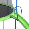 This 12-foot trampoline with enclosure features a 360-degree safety net that is securely fastened to the jumping mat, reducing the risk of falling arms or legs. The full enclosure with zippered door is sure to give you peace of mind. Rust-resistant steel 4-step ladder helps you get on the trampoline quickly and safely.