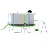 - 【3 In 1 Trampoline】Jumping is made even more fun with the addition of a basketball goal that will keep your child busy all day long. This trampoline with 2 swings, plastic slide and basketball hoop for kids to play on.