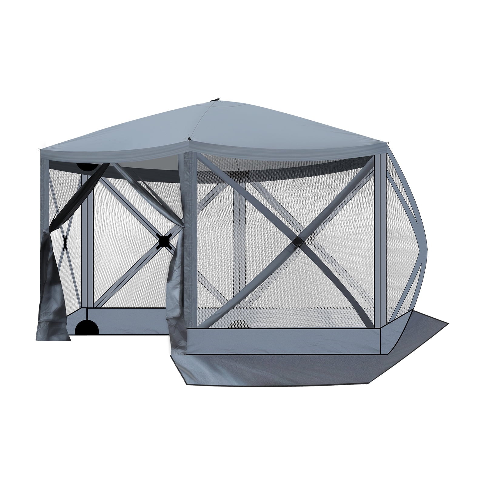 12FTx12FT Pop up Camping Canopy Tent with 6 Mesh Sidewalls, Portable Easy up Outdoor Screened House Shelter Fully Sealed for Patio, Lawn, Camping, Picnic, Includes Carry Bag (Gray)